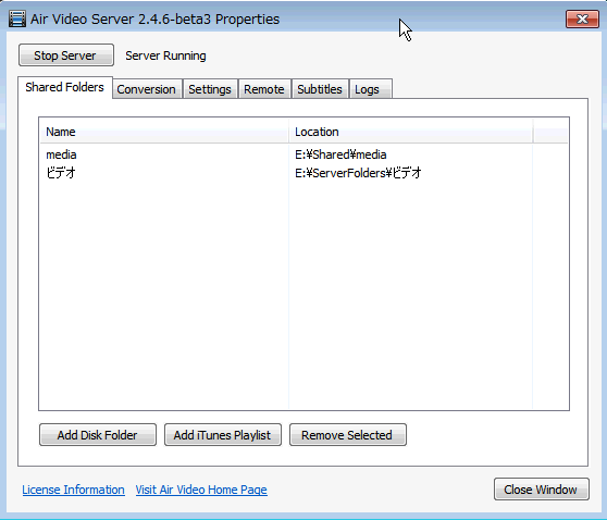 そこで、相当前に有料版のアプリを購入しながらも全く利用していなかった「Air Video」のサーバをWHSにインストールしました。