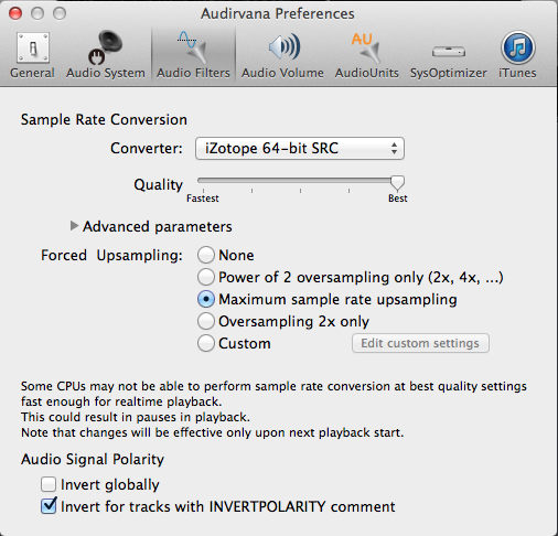 まずは、Audirvana Plusを「iTunes Integrated Mode」をオンにして、iTunesに入っている256k AACを再生。