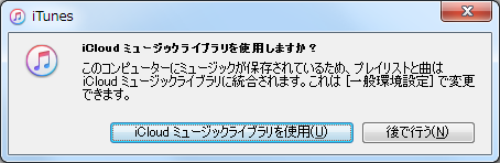 Apple MusicをiTunes12.2でスタートさせると、ミュージックライブラリをiCloudへ統合させる確認ダイアログが表示されます。ここでOKをおすか、「設定」画面で「iCloudミュージックライブラリ」のチェックを入れると、iTunes内の音楽ライブラリがApple Musicと照合されます。