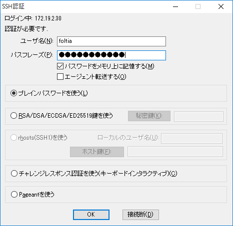 $ ssh -l foltia foltiaのIPアドレスまたはホスト名