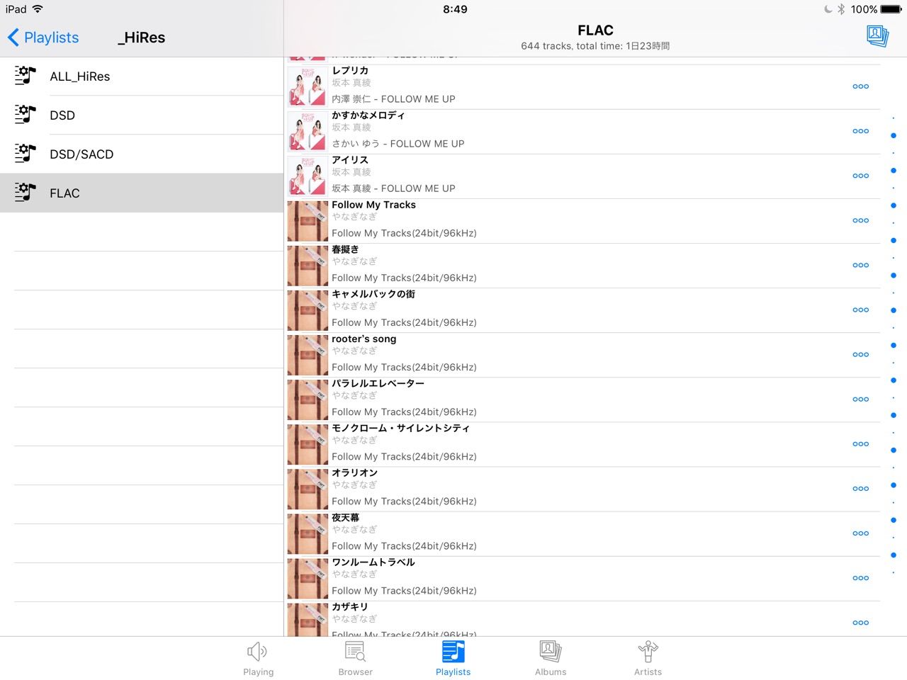 また再生中のジャケット表示やプレイリスト表示などもiPad標準の「ミュージック」アプリを超えた使いやすさ。