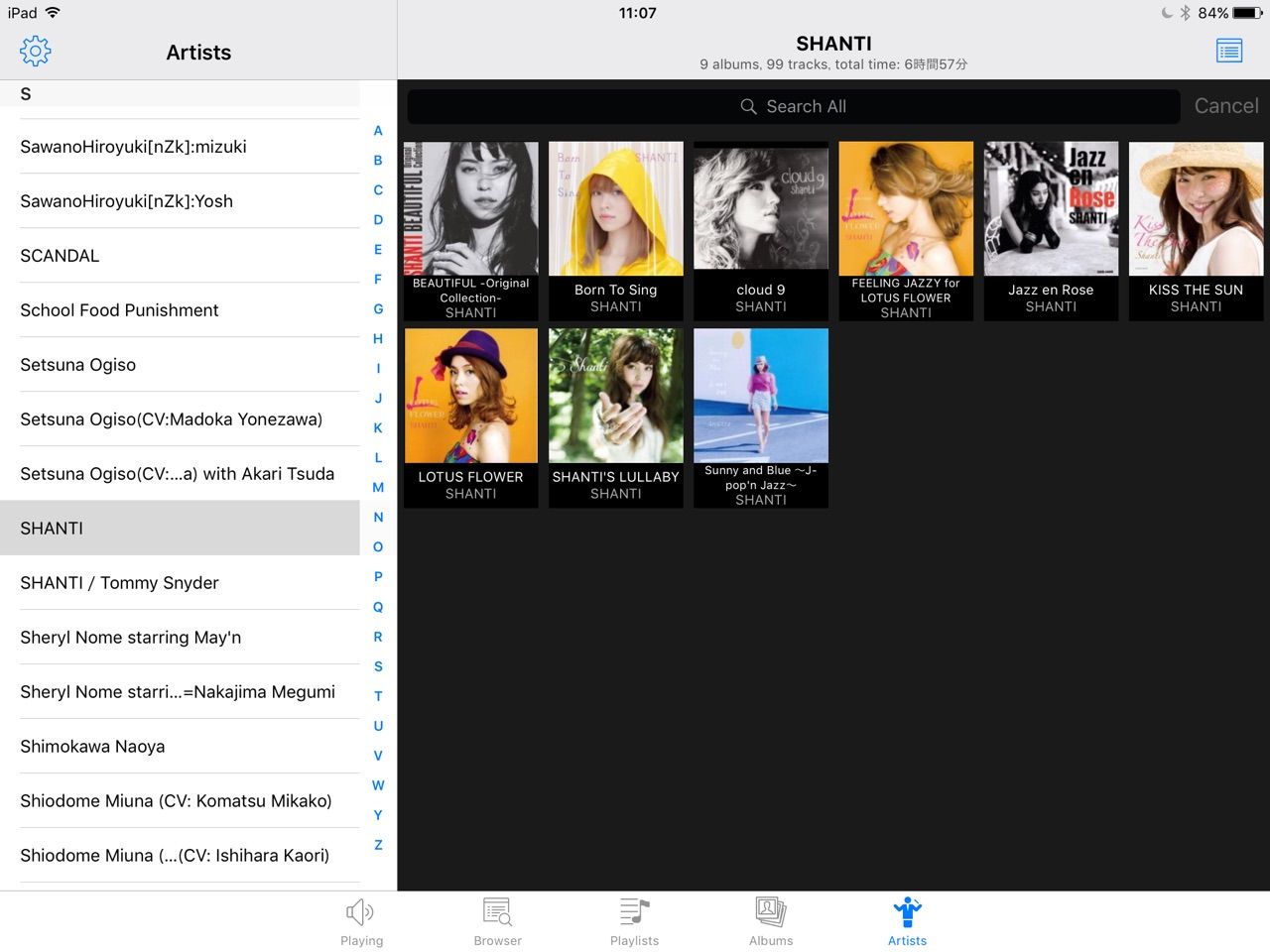 また、それぞれの画面でアルバムの「カバーアート表示」と「リスト表示」を瞬時に切り替えが可能です。