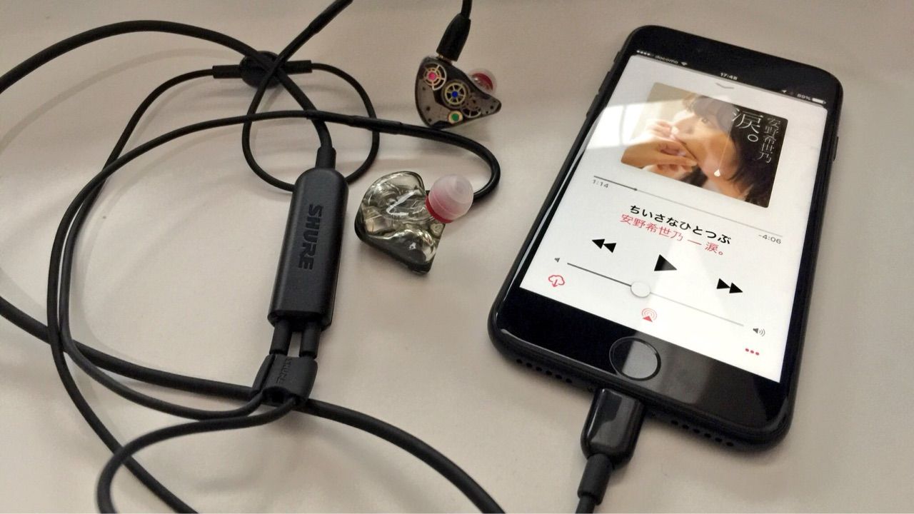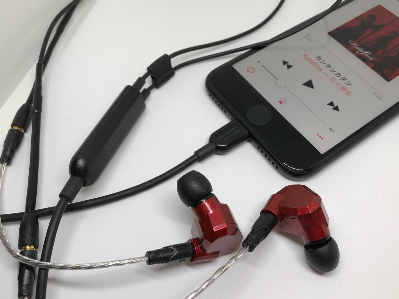 春先の各種イベント等で出品され、音作りの良さで非常に好評を博したのですが、何しろSE215SPEほか定番イヤホンを擁するShureの製品ですので、5月の発売と同時にiPhone 7などLightning接続必須の環境で同社のイヤホンを使いたい、というユーザーの注文が殺到し、あっという間に品切れ。オーダーのタイミングを逸してしまった私も2ヶ月以上待って8月初旬にようやく届きました(やれやれ)。