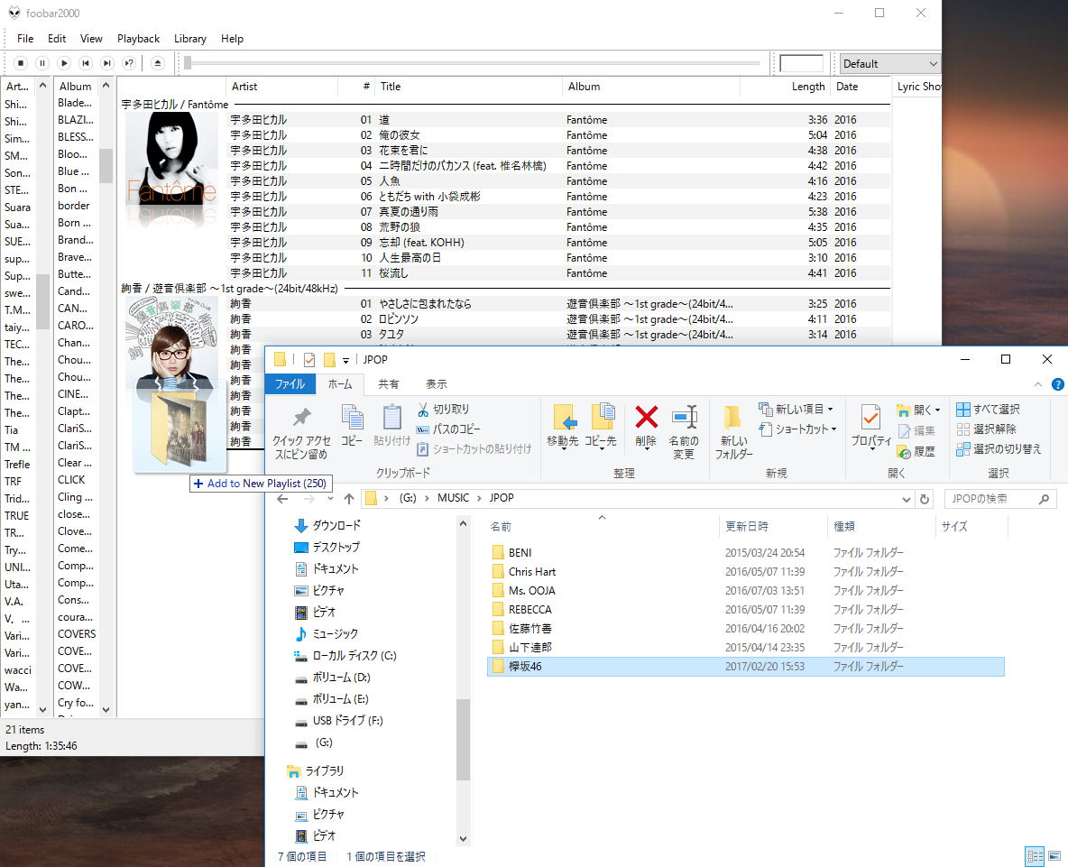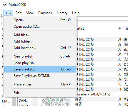 プレイリストは、本体メモリ用、microSD用と保存先が異なる場合はそれぞれ作成しなければならないルールがありますが、どちらもWindowsのfoobar2000を使って作成しています。