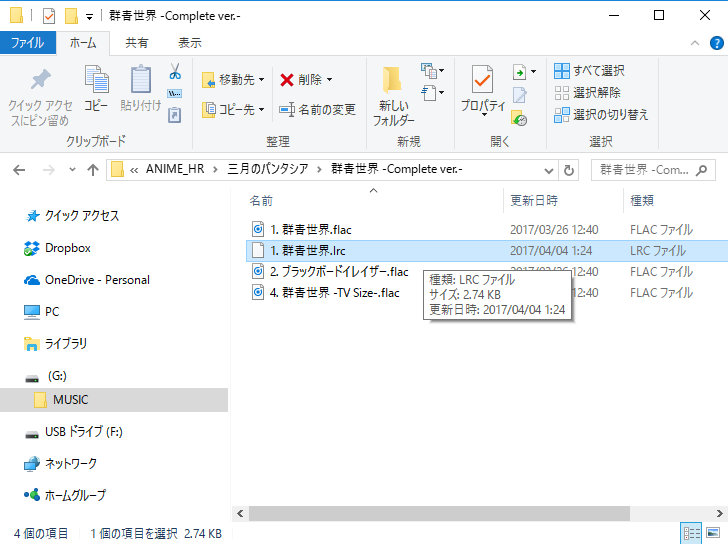 さらにハイレゾのFLACは「HR/J-Pop」のように