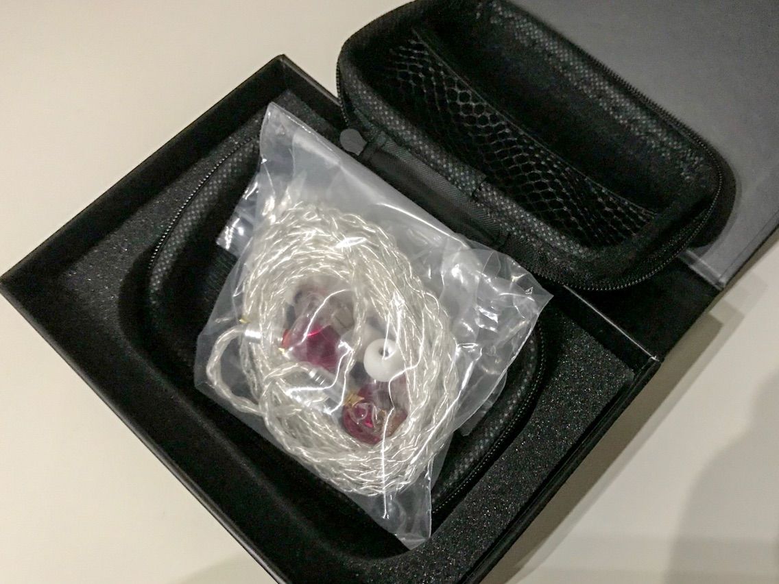 「Yinyoo H3」「Yinyoo H5」とも、パッケージはYinyooブランドのイヤホンでは共通のボックスで、なかに大きめのイヤホンケースが入っています。