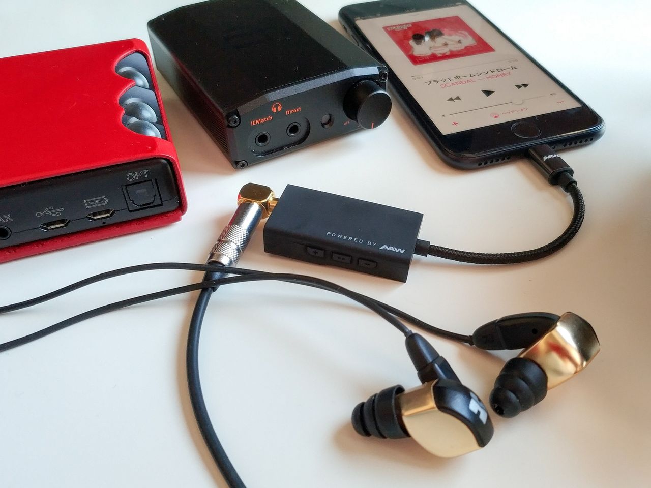 いっぽう、ヘッドホンでの利用では多くのヘッドホンで十分な出力と歪みの非常に少ないサウンドを確認できました。300Ωまでの対応とのことですが、いちおう手持ちの最も鳴りにくいインピーダンス600Ωの「AKG K240 Monitor」というとても古いヘッドホンでも最大音量近くまでボリュームを上げる必要はありましたがほぼ普通に使用することができました。ただ、これらのヘッドホンを使用すると結構なスピードでiPhone側のバッテリは消費してしまいましたが・・・。このように「AAW ACCESSPORT」はヘッドホンと一部の高インピーダンス&低感度のイヤホン専用のオーディオアダプタと考えた方が良さそうです。■「AAW ACCESSPORT」の音質を「nano iDSD BL」および「Mojo」と比較してみた。