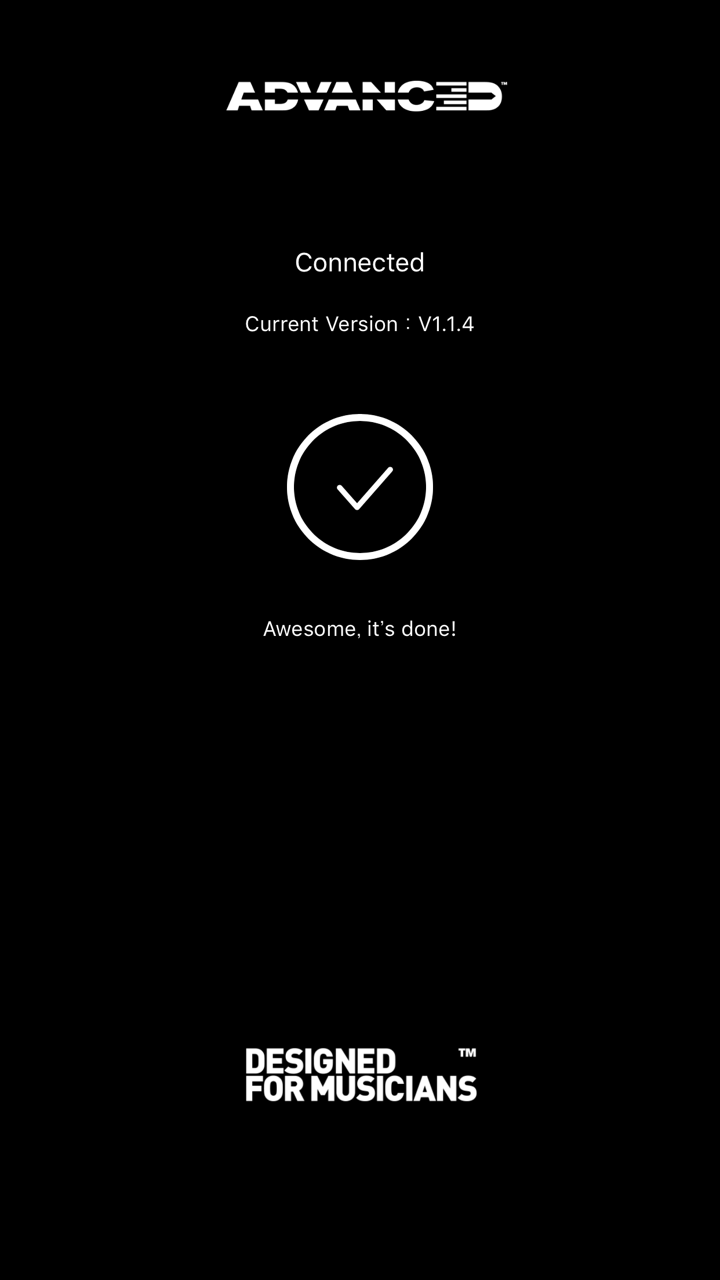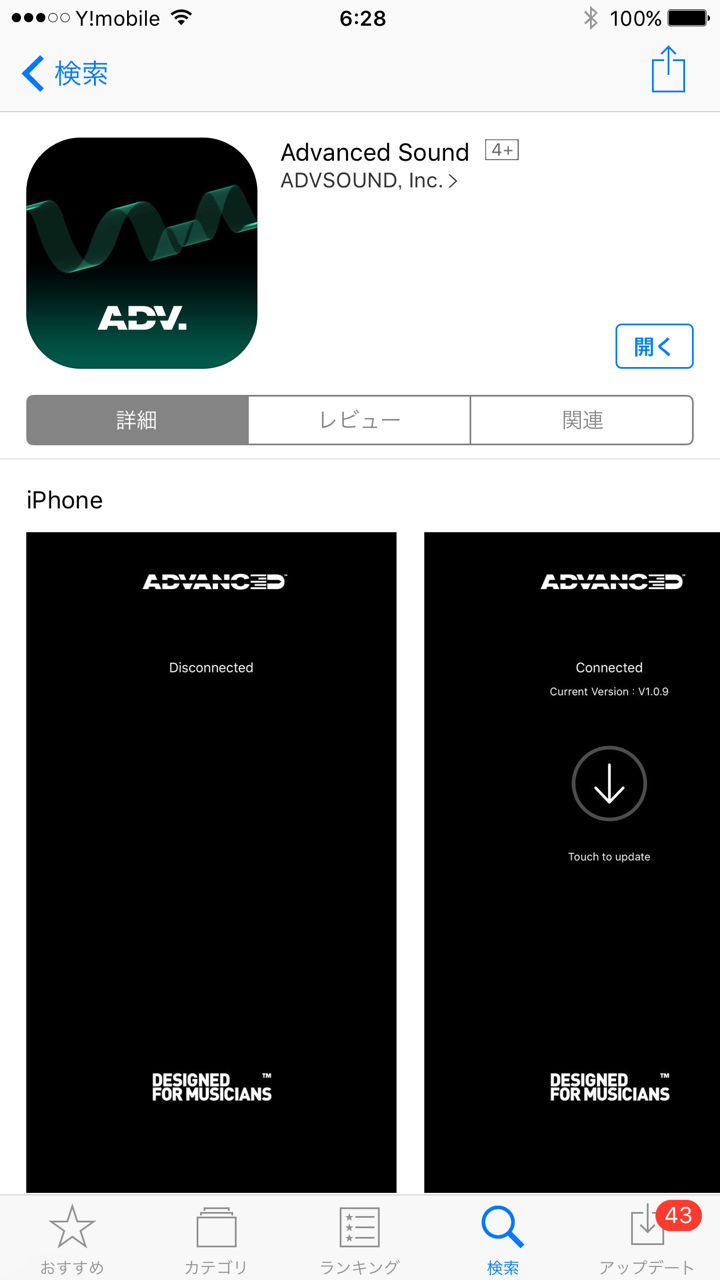 「AAW ACCESSPORT」をまず最初に接続した際、専用アプリのダウンロードが促されます。いったんキャンセルしてもそのまま使用することが可能ですが、以降は同様のアラートは表示されないため、専用アプリは個別のインストールが必要になります。「AAW ACCESSPORT」のファームウェア更新専用アプリはApp Storeで「Advanced Sound」と検索すると表示されます。