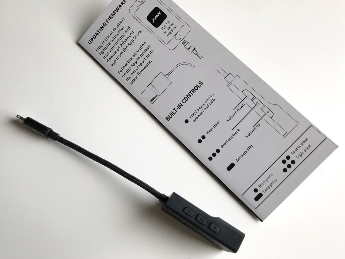AppleのMFi(Made For iPhone/iPad/iPod)認証を取っているLightningオーディオアダプタの多くは3.5mmのステレオミニ端子のみの製品がほとんどですが、「AAW ACCESSPORT」はLightningケーブルを接続するポートも備えており、「充電しながらの使用」ができる点は日常使いをする方からは有り難い仕様ではではないかと思います。また側面には再生・停止・音量・曲送りなどを行うボタンがついています。