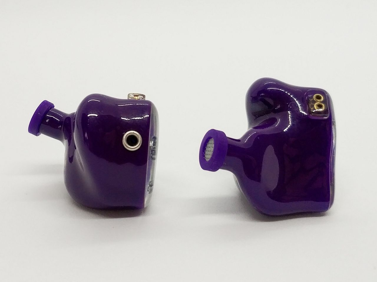 「KING PRO」と比較するとフェイス部分の大きさはよく似ているものの背面のデザインが大きく異なっており、より耳穴にしっかり装着できる形状となっていることがわかります。またベント(空気孔)は側面にあり装着時に上方にくるデザインとなっており、遮音性も高く音漏れもほぼありません。