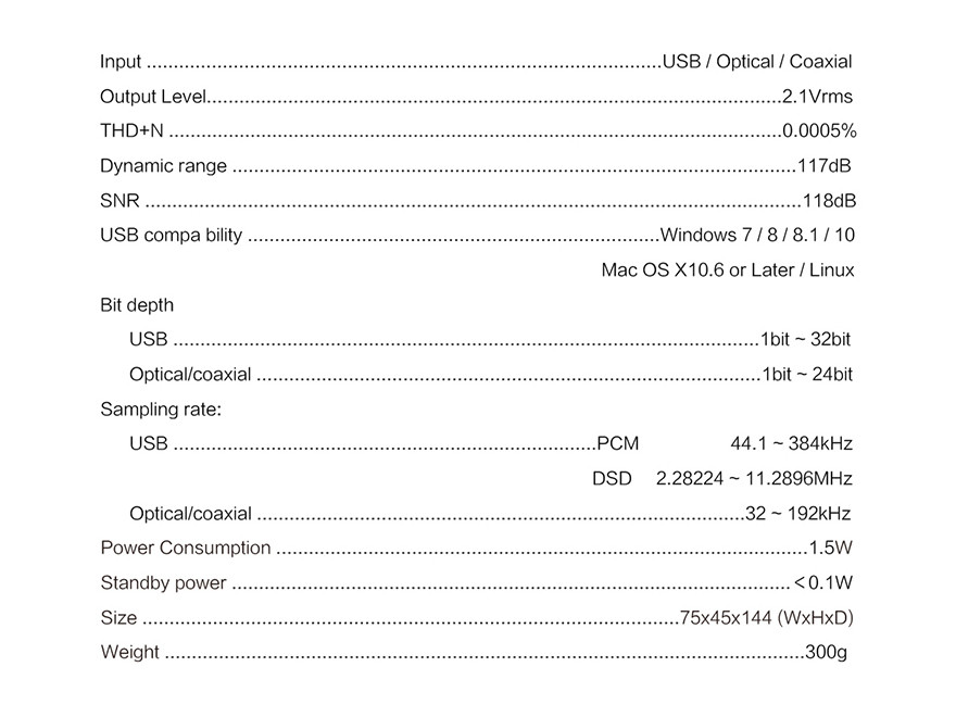 入力インターフェースはUSB(microUSBコネクタ)、2系統のSPDIF入力(COAX端子および光端子)の3系統の入力に対応します。PC/Macへの接続時にはUSBのバスパワー稼働が可能で、さらにmicroUSB端子の補助入力から電源を供給することで、iOSデバイス(Lightningカメラアダプタと変換コネクタが必要)およびAndroid(OTGに対応する端末とOTGケーブルが必要)の出力が可能です。つまり、USB-Audio出力に対応したDAPとの接続も可能になります。