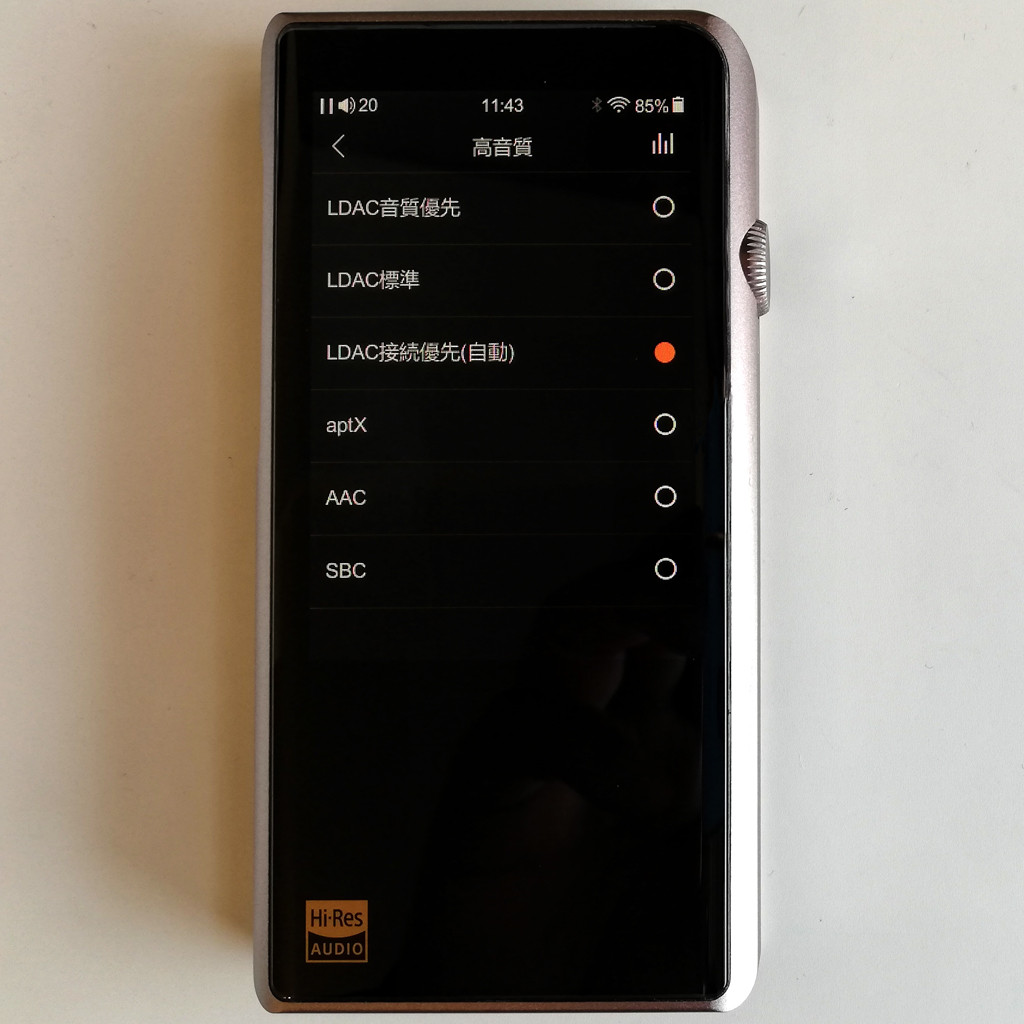 あとワイヤレス機能については従来のBluetooth機能に加え、Wi-Fiの利用が可能になりました。Bluetooth機能は超コンパクトモデル「M0」で搭載された機能をほぼ踏襲していて、Bluetoothイヤホンやヘッドフォン、スピーカーへの出力はもちろん、スマートフォンからの「レシーバー」としても「LDAC」を含め各種コーデックを使用して接続できる仕様となっています(Bluetoothで利用できる機能の詳細については「M0のレビュー」にて紹介しています)。