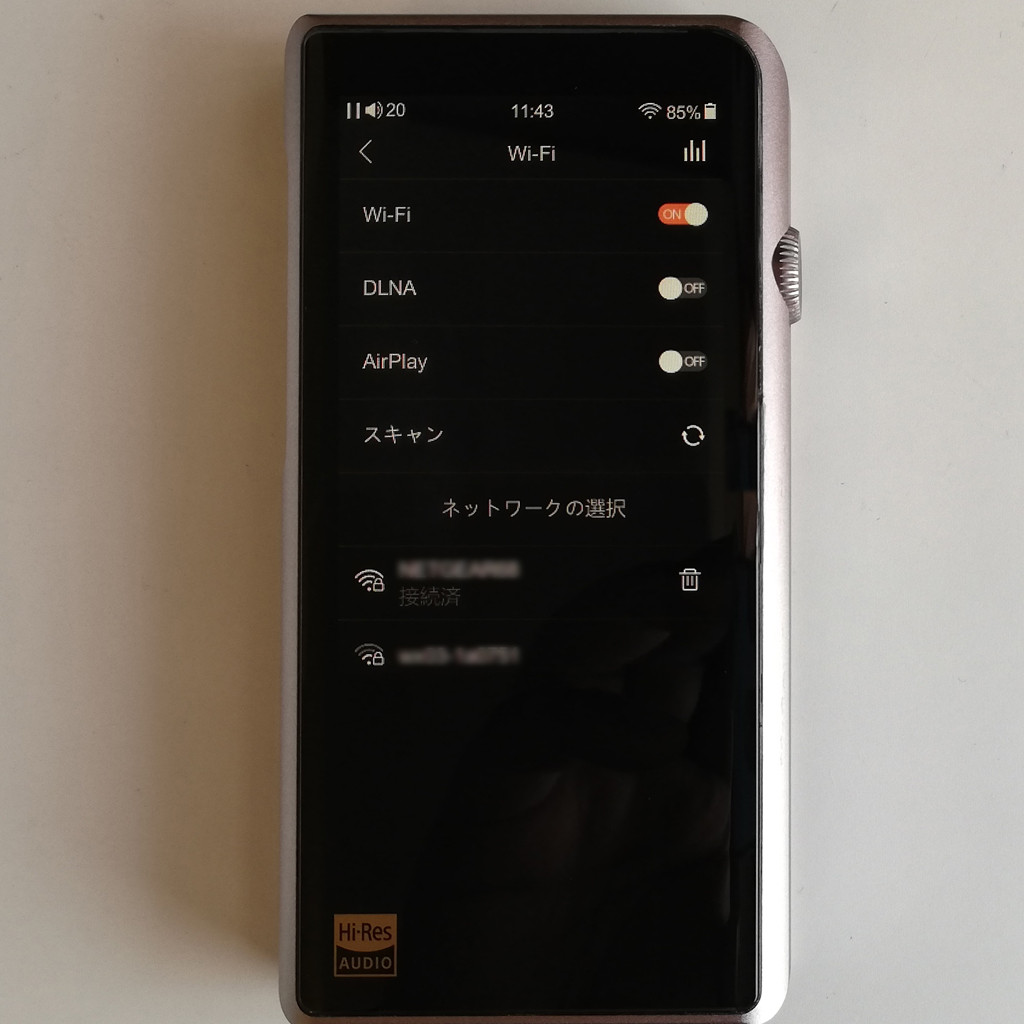 さらにWi-FiでLAN内のアクセスポイントに接続することで「AirPlay」および「DLNA」レシーバーとして「Shanling M5s」が使用できるようになります。iPhoneからのApple Musicなどのストリーミングコンテンツを「無劣化コーデック」を使用するAirPlayでリモート再生できるメリットは大きいですね。AirPlayの場合、送り側の曲情報やカバーアートも表示されます。