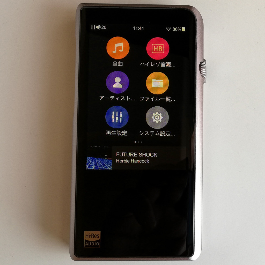 ちなみに操作性については到着してからファームウェアのバージョンアップが一度あり、細かい問題点がフィックスされました。現在は多少タッチパネルによるもたつきはあるものの動作自体は安定してます。メニューは横にスワイプすることでさらにライブラリを絞った再生が利用できます。