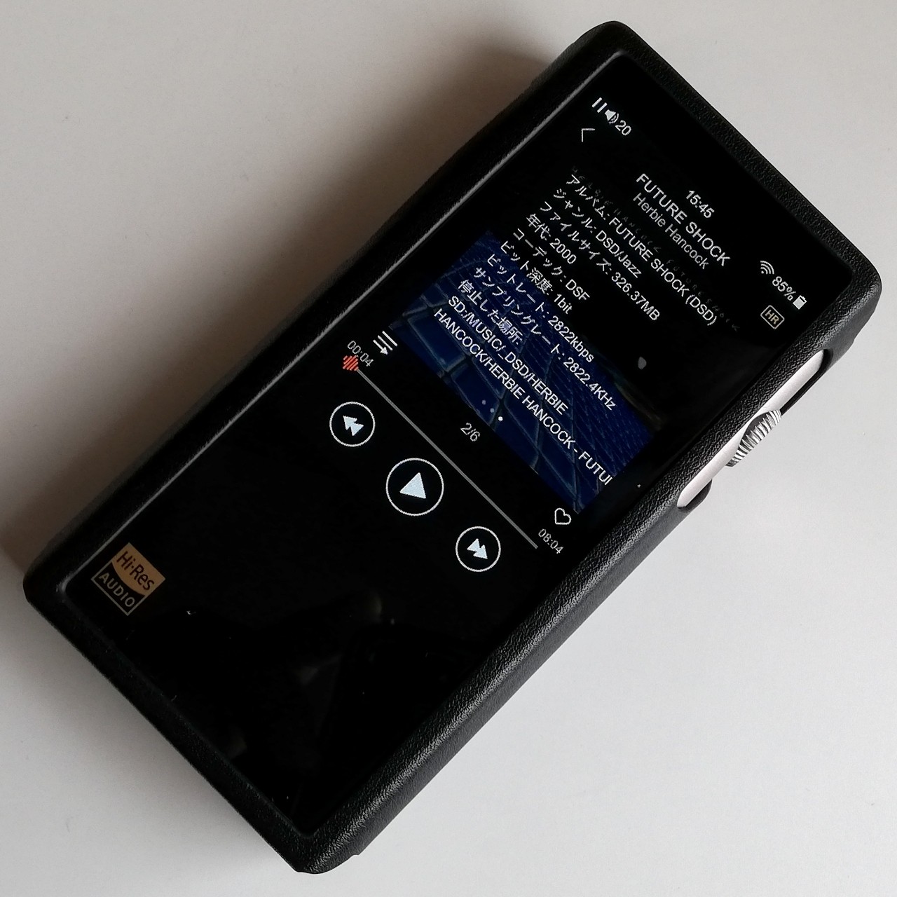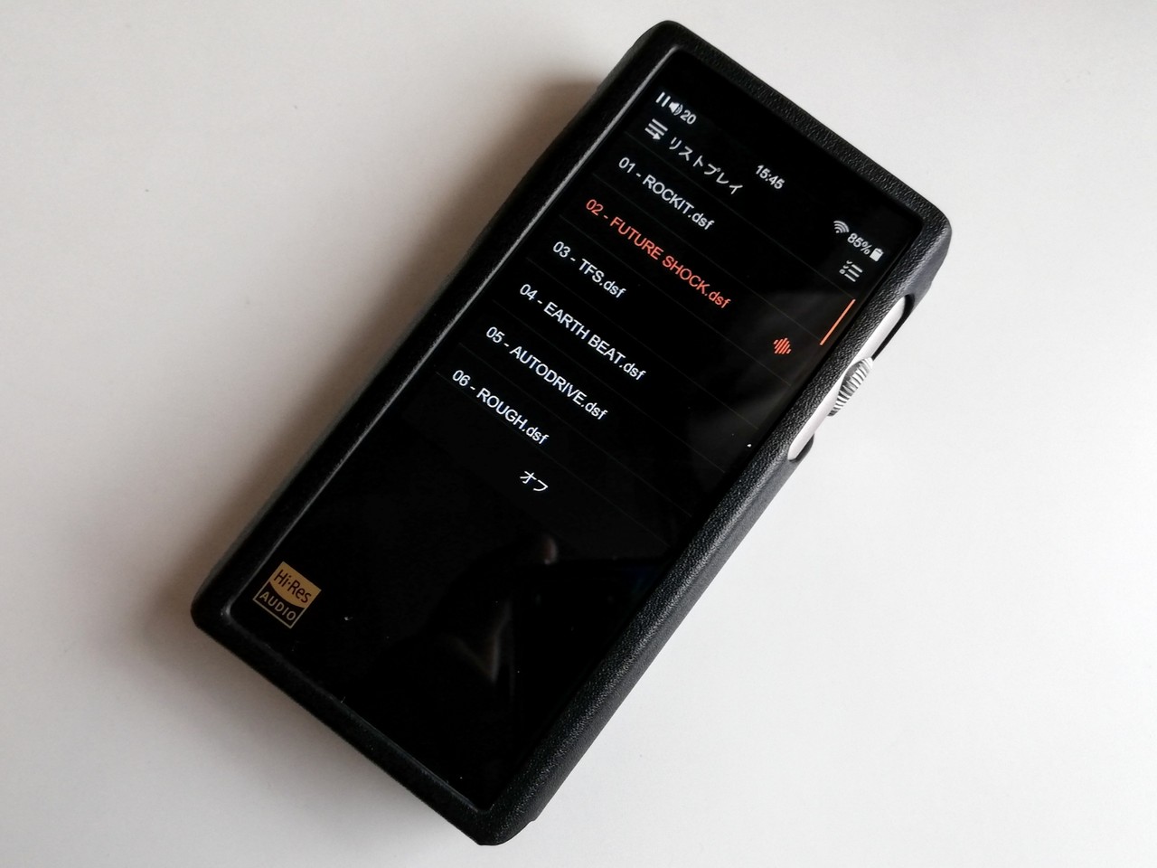 オプションのレザーケースは非常に薄い素材で作られており、装着した状態でも操作感には違和感はありません。「M3s」のケースがかなり使いづらかったため、今回はかなり改善されたと感じます。タッチパネルとなったことで、より直感的な操作が可能になり、マニュアルなしでも操作に戸惑うことはほとんどありません。またファイル名での再生の場合、フォルダの並び順が「Shanling M5s」ではかなり改善されています。
