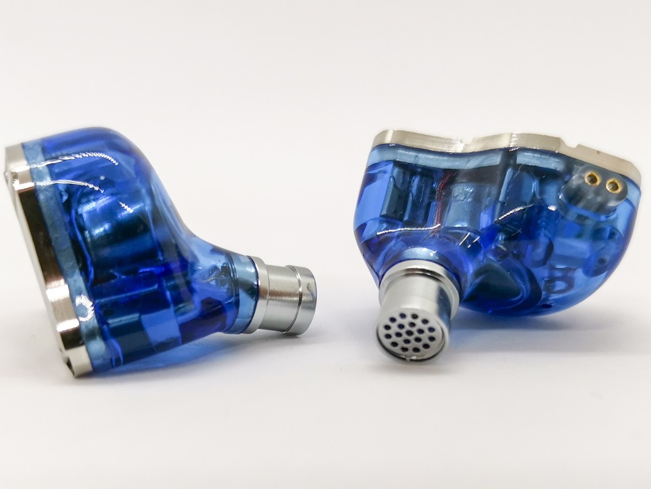 まず限定色の「Royal Blue」ですが、本体仕様は通常の「KZ ZS10 Pro」と大きな違いはありませんが、ステンレス製のフェイスプレートが塗装されているのが特徴的です。青色は素地のメタリック感を活かしたクリアブルーの仕上げで思った以上にフェイスプレートのステンレス感が残っているなという印象です。
