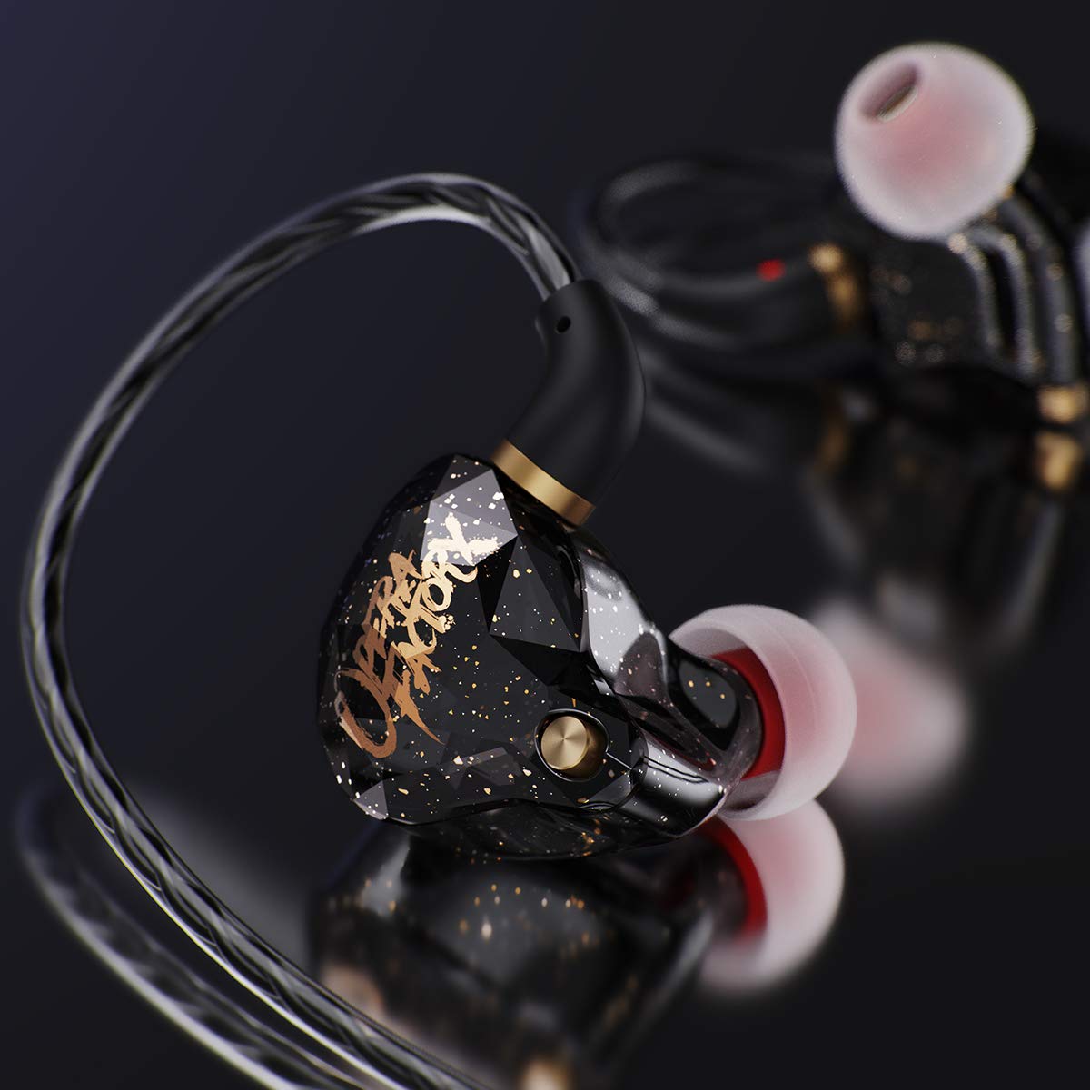 「OM1(Superbass)」はレッドとグリーンのクリアシェルでリケーブルに対応しているモデルでしたが、「OperaFactory OS1」(Junior)では、ブラックカラーのデザインとなり、ダイナミックドライバーの仕様も若干スペックダウンしたものになっている模様です。また「リケーブルには非対応」で(AliExpressにはMMCX対応との記載がありますが誤表記と思われます)、同社のサウンドを気軽に楽しむための製品、という印象ですね。