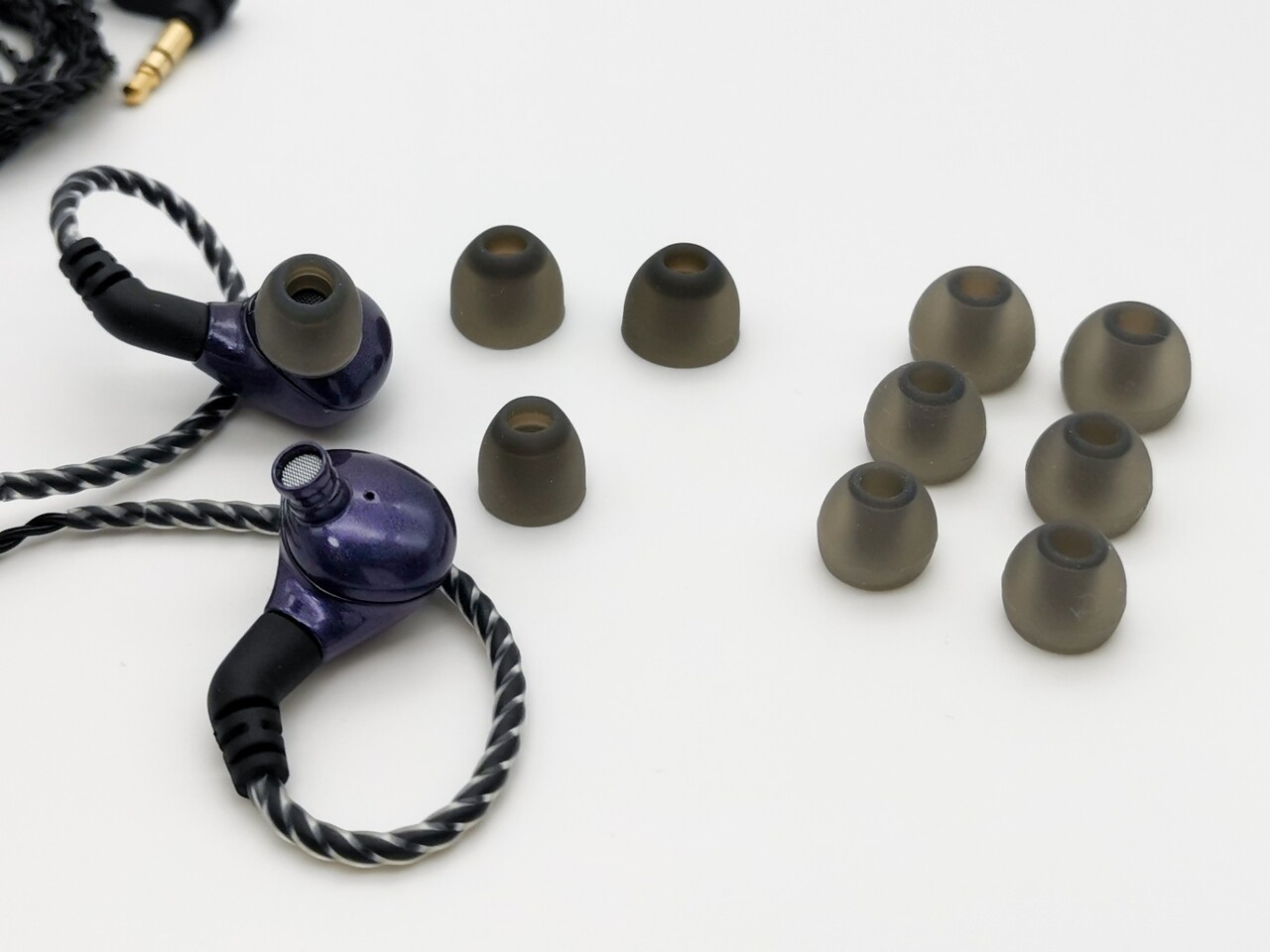 (追記)これが先日届いたパープルタイプではもう少し長さがあり耳奥まで入るタイプのイヤーピースに変更されました。初期タイプのイヤーピースでは本来のサウンドを実感できないケースもあったため、これは嬉しい変更です。