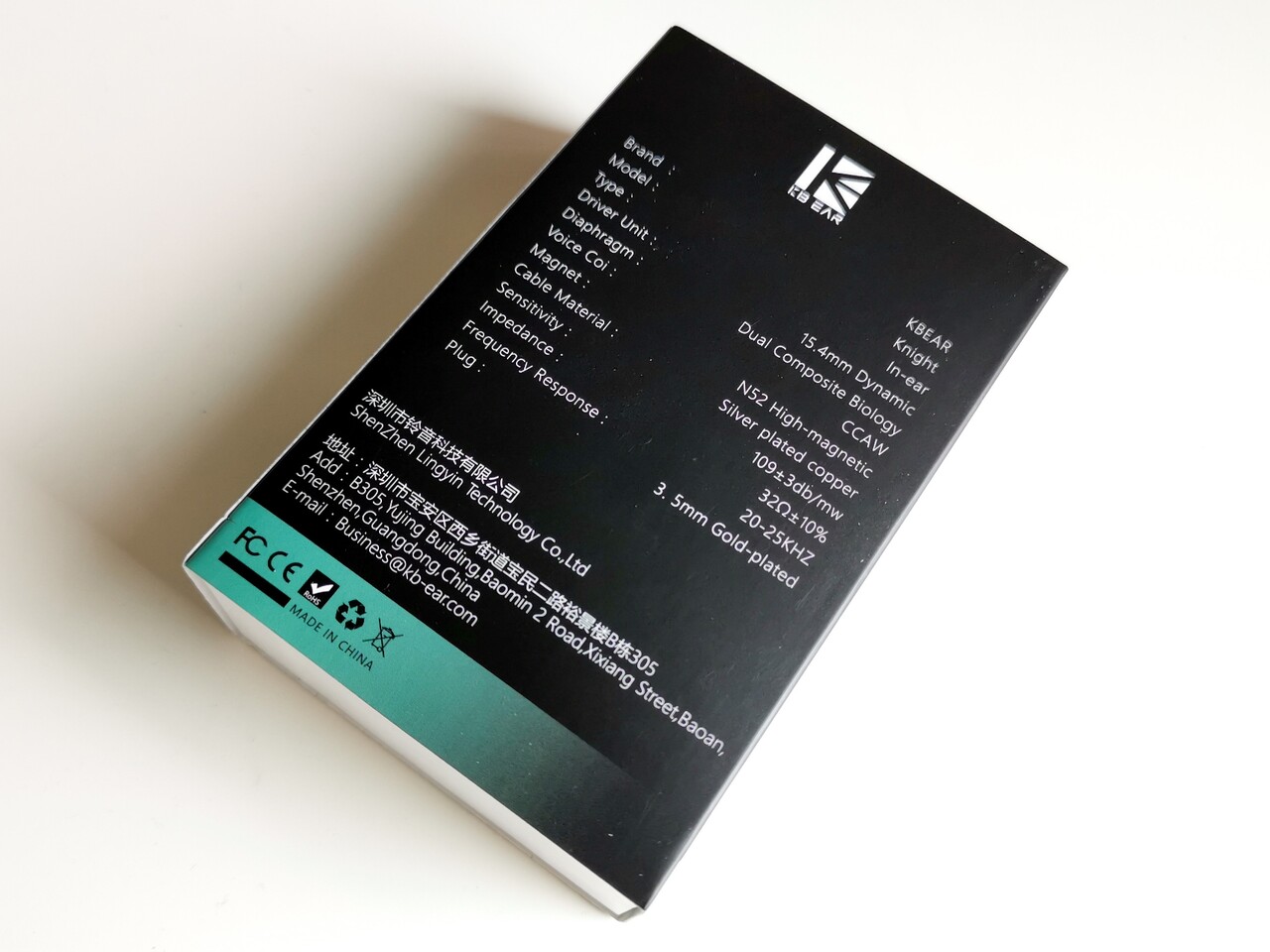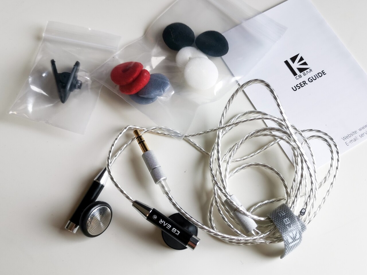 「KB EAR Knight」のパッケージは「KB EAR OPAL」や「KB EAR F1」など低価格モデルと共通のボックスデザイン。パッケージ内容は、イヤホン本体、ケーブルフック、スポンジ製イヤーパッド(4色/4ペア)、説明書。必要最小限の内容による低コスト化が伺えます。