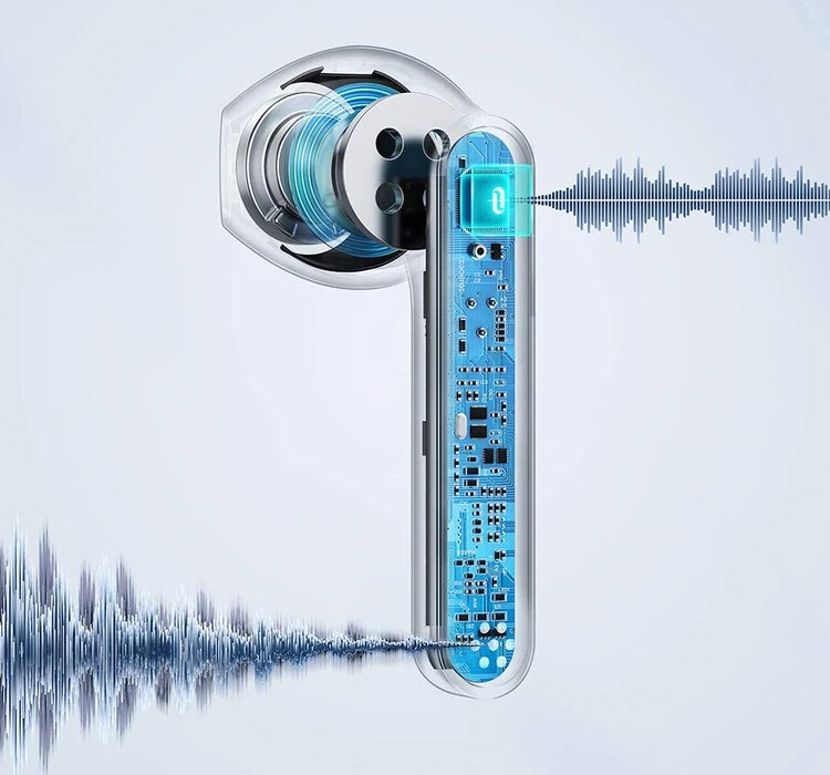 「SoundLiberty 88」の最大の特徴は「ELEVOC AI」の搭載です。ペアリングしたスマートフォンでワイヤレスの音声通話を行う場合、マイク部分が口の位置から離れる完全ワイヤレス(TWS)イヤホンでは自分の声以外の周波数の環境音を削除する「通話ノイズキャンセリング」が不可欠です。この機能で有名なものはQualcommの「CVC 8.0」などの技術で、同社製チップセットを搭載したワイヤレスイヤホンなどで搭載されています。