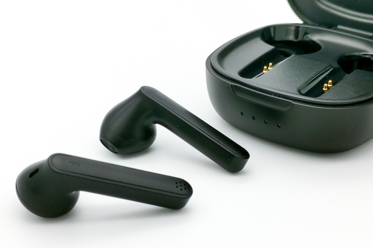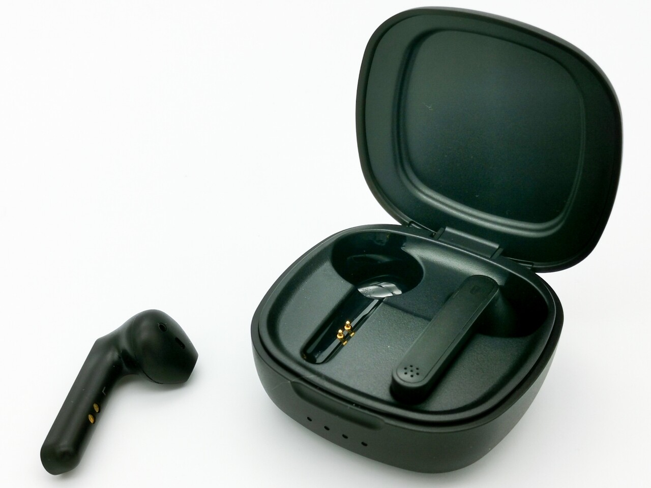 ブラックのAirPods型(あるいは通称「うどん」型)のスタイルはTaoTronicsのイヤホンでは結構お馴染みですね。インナーイヤー型ですので遮音性はあまり期待できませんが、ストレスの無い装着感で使用できるのはライトユーザーにもメリットでしょう。「SoundLiberty 88」ではつや消しの表面処理で落ち着いたデザインとなっており、男性女性問わず違和感なく使えるデザインになっています。いちどペアリングを済ませておけば、次回からはケースを開けた時点で自動でペアリングが行われ、ケースに収納すると自動で電源が落ちます。「SoundLiberty 88」のケースは非常にコンパクトなスクエアデザインを採用しています。持ち歩きでもカバンの中だけでなくポケットに入れておいても邪魔にならなさそうですね。