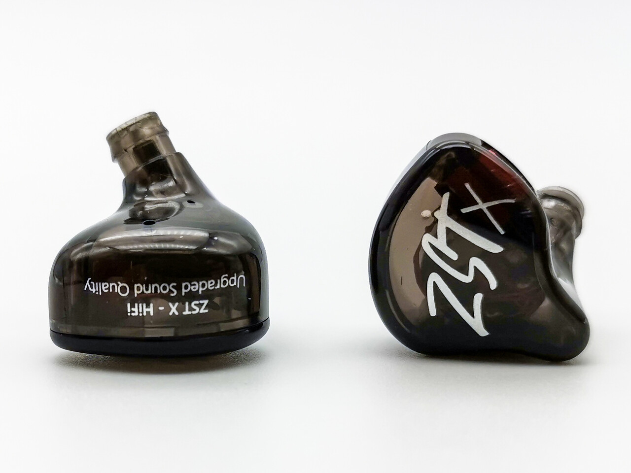 前述の通り「KZ ZSTX」のシェル形状は「KZ ZST」と同一です。「KZ ZST」も4年間も販売された製品ですので、その間に頻繁な改良を加えていますが、シェル形状自体は変わっていません。そしてその形状を「KZ ZSTX」はそのまま踏襲してるわけです。いっぽう「KZ ZSN」「KZ ZSN Pro」は僅かに大きく金属製ステムも太いことがわかりますね。