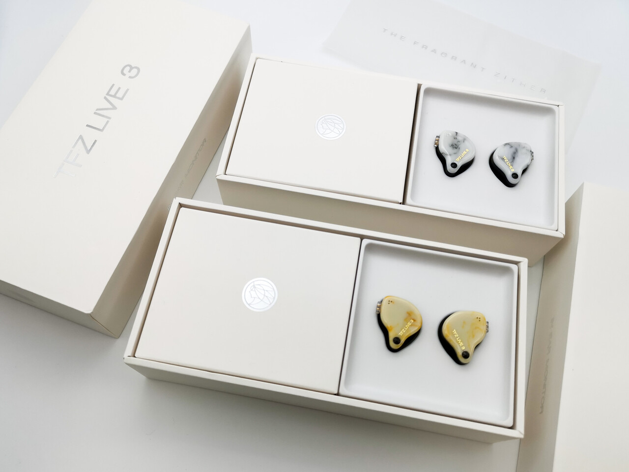 「TFZ LIVE 3」のパッケージは「LIVE 1」から採用された新バージョンのボックスになっています。TFZ Offical Storeより期間限定のプレオーダーで「ホワイト」と「イエロー」を購入しました。実際に届いてみると思ったより似た色だったので、1個は濃い色でオーダーしておけばよかったですね。