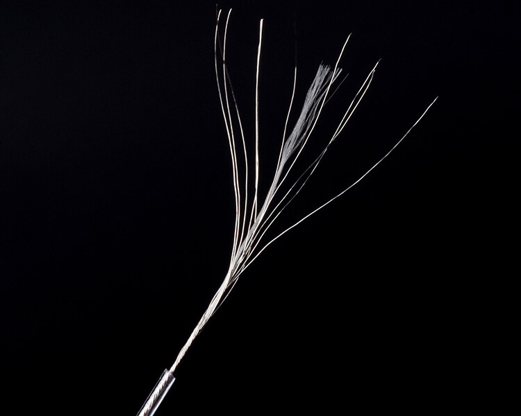 KBEARの新しい8芯 純銀線ケーブル 「KBX4913 (Limpid Pro)」は同社でも人気の高い4芯 純銀線の「KBX4904(Limpid)」と同じ線材を使用し情報量を倍増したケーブルです。よりハイグレードなイヤホンとの組み合わせでも十分な実力を発揮できるケーブルに進化しました。線材はより高純度な99.998%の純銀線を使用し、1芯ごとに0.10mmの銀線を10本束ねて構成しています。なお、線材の補強にはデュポンのアラミド繊維を使用しているようです。