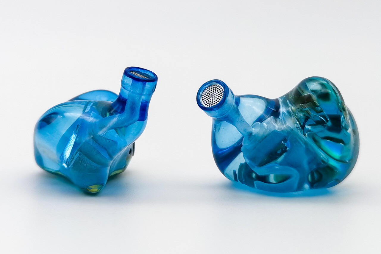 今回の「AUDIOSENSE DT100」は新しい「シングルBA」モデルで、最新ドライバー搭載にによるバランスの良いサウンドとコンパクトで美しいブルーのクリアシェルが印象的なモデルです。ブルーのシェルはDLP 3Dプリンティングによる出力で医療レベルの高品質レジンを使って成型されています。
