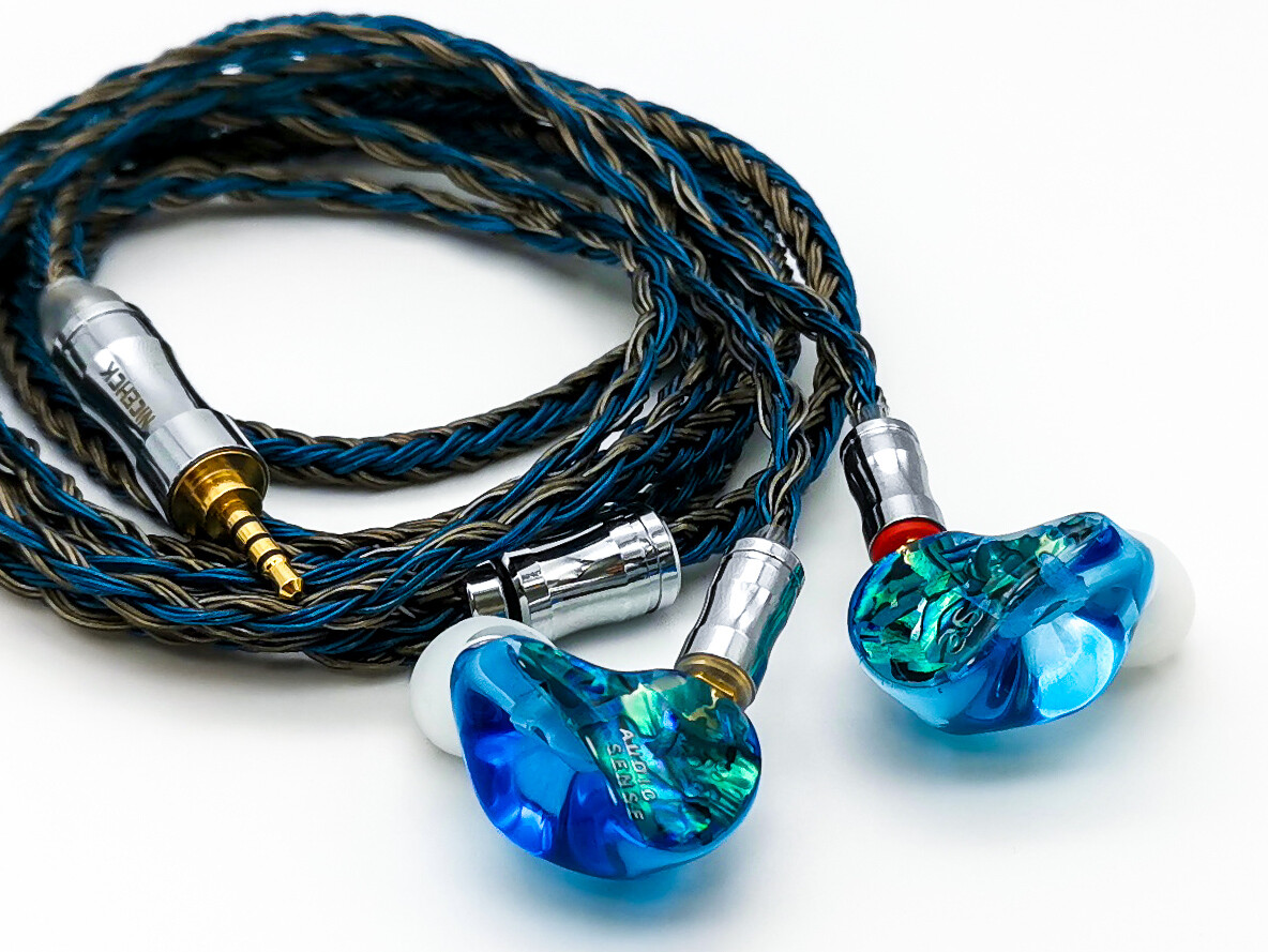 MMCXコネクタを採用していますので選択肢は多く、「NICEHCK C8s」シリーズ、「TRI TR4908」などが候補に挙がるでしょう。またより低価格なケーブルでは「JSHiFi BS8」 もブルーのカラーリングが見た目にも合いますし、同様の変化が実感できます。また、24芯銀メッキ線&銅合金ミックス線ケーブルの「NICEHCK C24-2」では全体的な解像感や分離性がより底上げされ、多少メリハリは強めにでるものの、より密度感のあるサウンドを楽しめます。他にも色々なケーブルで変化を楽しんでみるのも良いかもしれませんね。