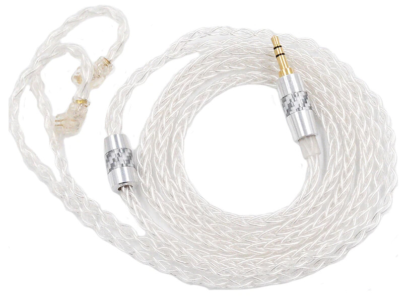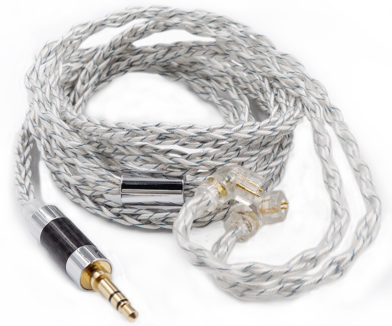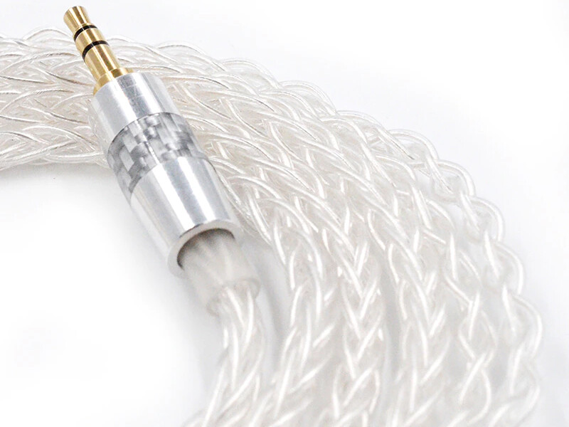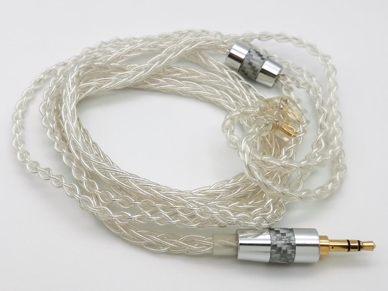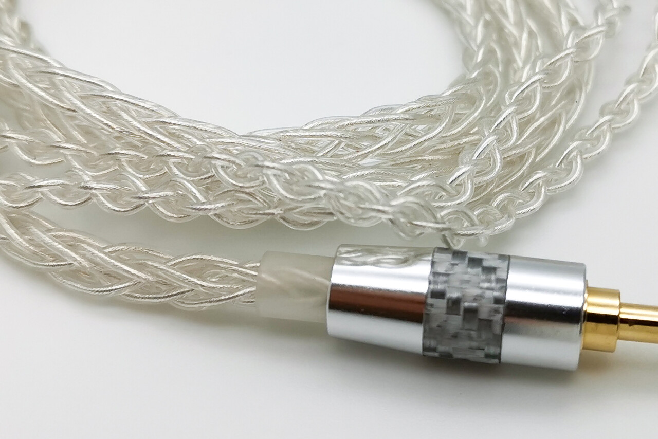 2種類のミックス線ケーブルに対し、「KZ 8 Core OFC Silver-plated Upgrade Cable」はシルバーカラーのシンプルな8芯銀メッキ線ケーブルとなります。特徴としては4N(99.995%)の高純度無酸素銅銀メッキ線を使用し、多くの中華ケーブルが採用している低コストの薄いメッキではなく、外部機関の審査によると線材(0.08mm)あたり0.214μmの銀メッキ処理を行ったより高純度な銀メッキ線を使用。この線材を8芯合計152本使用した質の高い銀メッキ線ケーブルとのことです。