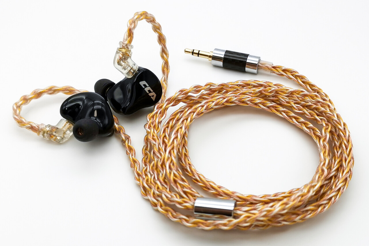 リケーブル後の音質傾向はやはり自然な範囲ながら鮮明さが増す印象のケーブルです。KZおよびCCAのイヤホンはもともと明瞭感のある傾向のサウンドですが、多少硬質さが引き立つ印象はあるものの、中高域の鮮やかさが増し、より明るく彩りのあるサウンドを楽しめます。いっぽうで高域の刺激が極端に強くなることはなく、もともとのバランスを維持しているのも純正ケーブルならではでしょう。こちらもどのシリーズのモデルとも合いますが、特にマルチBAとの相性が良い印象です。傾向そのものに大きな変化はないものの、付属ケーブルでは籠もりがちなマルチBAモデルで中高域を中心に主張と伸びが向上します。また見た目のクールさでイヤホンを引き立たせるケーブルでもありますね。