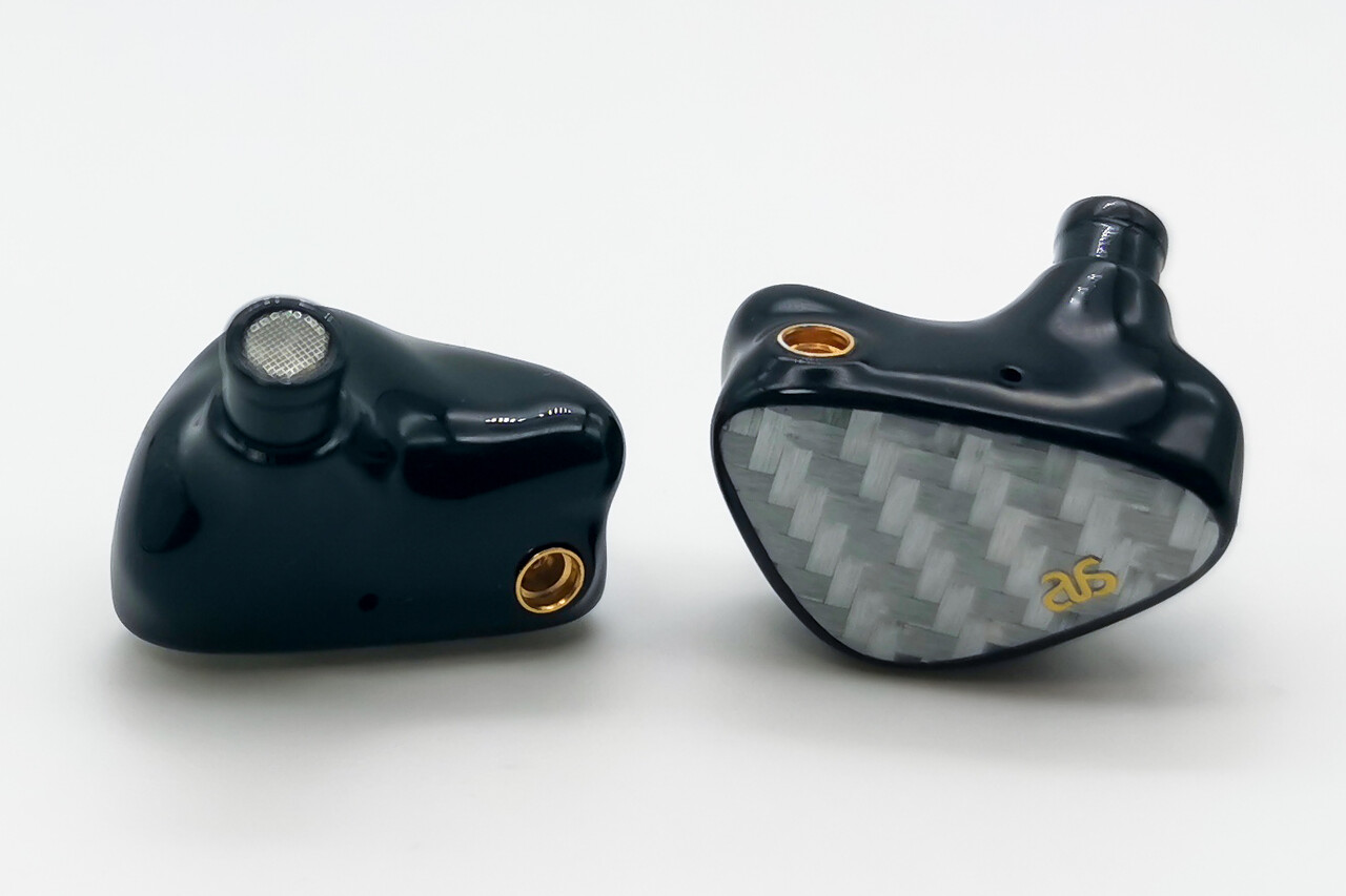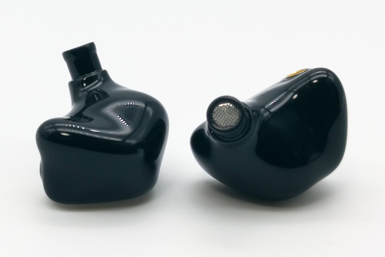 3Dプリンティングによる本体は不透明なブラックレジン製でカーボンファイバーのフェイスプレートが埋め込まれています。非常に軽量かつ耳にフィットするスリムなデザイン。ただ不透明なレジンシェルのため、クリアカラーのレジンを使用しているDTシリーズと比べると若干プラッキーな印象を持つかもしれません。しかしつなぎ目のない美しい表面仕上げなど地味ながらしっかり作り込まれていることも確認出来ます。