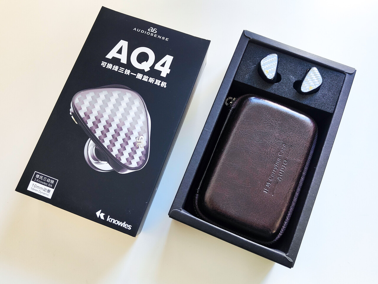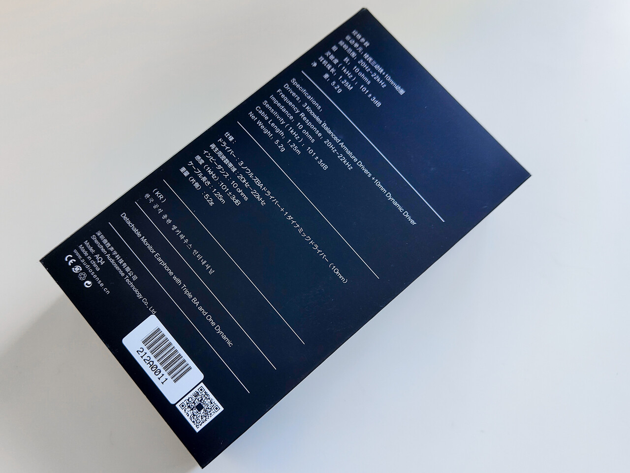 こんにちは。今回は「AUDIOSENSE AQ4」 です。中国のイヤホンブランド「AUDIOSENSE」のイヤホンはこれまで何種類か紹介していますが、私のブログでは何気にハイブリッド製品は初めてですね。同社のダイナミックドライバー搭載モデルおよびハイブリッドモデルは「AQ」から始まるモデルナンバーが設定されています。今回紹介する「AUDIOSENSE AQ4」は3BA+1DD構成の片側4ドライバー構成となります。