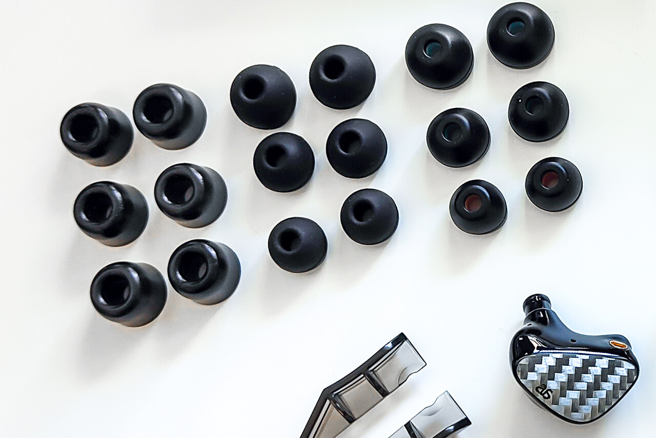 イヤーピースはシリコン2種類(通常タイプ、ソニー風タイプ、ウレタンタイプ)が付属します。付属品のほか、定番のJVC「スパイラルドット」やよりフィット感の強いタイプでは「AZLA SednaEarfit XELASTEC」や「SpinFit CP100+」に交換するのも良いでしょう。耳にフィットするイヤーピースを選択することでより高い装着性や遮音製を得ることが出来ると思います。