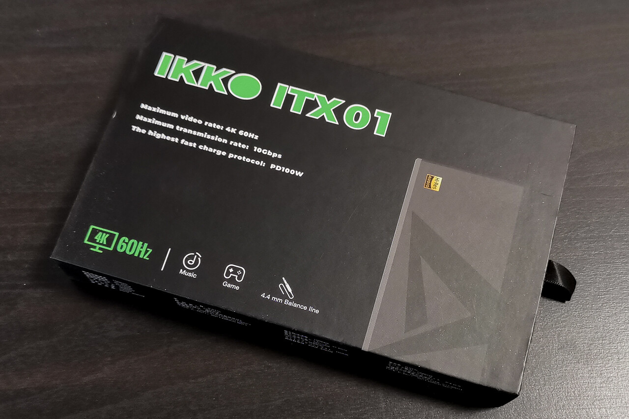 こんにちは。今回は「IKKO ITX01」です。高音質で魅力的なイヤホン製品を数々リリースしている中国の「ikko Audio」(アイコーオーディオ)ですが、同社はオーディオアダプター製品も結構以前から手がけており、どれも他社とはちょっと違った視点のアイテムが特徴的です。そんななか、今回はオーディオ製品と言うよりデジタルガジェット扱いに近い製品となりますね。最近コンパクトながら高音質、高出力なオーディオアダプター製品が各社からリリースされているなかではややキワモノ感はありますが、ビジネスでMacBook等を普段から持ち歩いている方など、この手のアイテムを日常的に使っている層にとっては「ありそうでなかった」ちょっと気になるアイテムなのではないでしょうか。