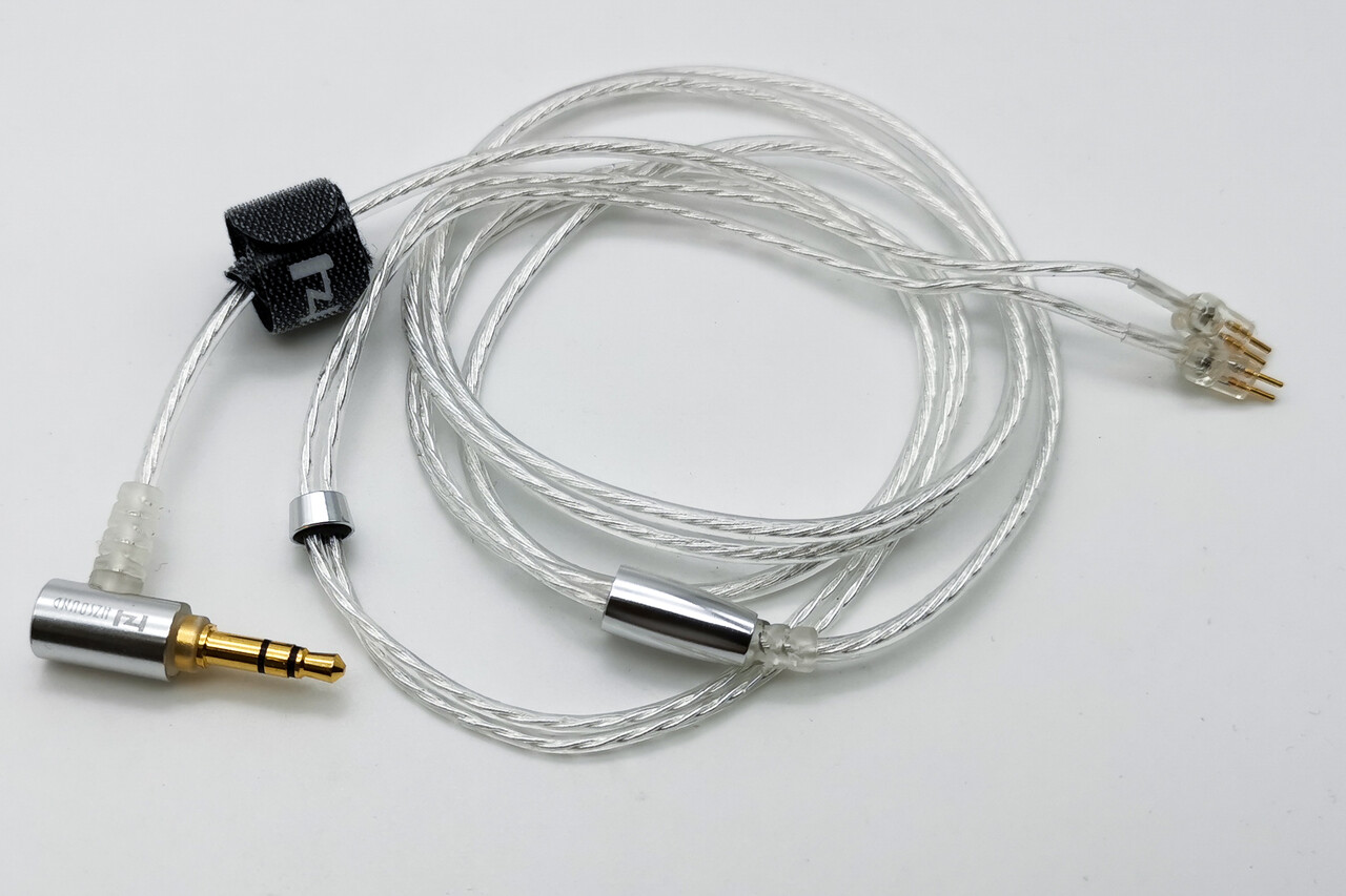 「HZSOUND Waist Drum」は非常にコンパクトと言うこともあり、耳にすっぽり収まる装着感です。同クラスの製品と比較すると、サイズ的には「final E1000」より若干コンパクトで「Moondrop Quarks」より長さが僅かに大きい感じですね。ケーブルは透明な樹脂被膜の銀メッキOFC線で被膜はわず弾力がありますが耳掛け式で装着しても問題ない程度の柔らかさは確保されているようです。絡まりにくく使いやすいケーブルといえるでしょう。イヤーピースは付属品のほか、耳のサイズ感に併せていろいろ替えてみるのも良いでしょう。私の場合は耳穴(外耳道)が細いこともあり、より奥でしっかりフィットさせるために「SpinFit CP100+」のような多少粘着性のあるタイプがより好印象でした。