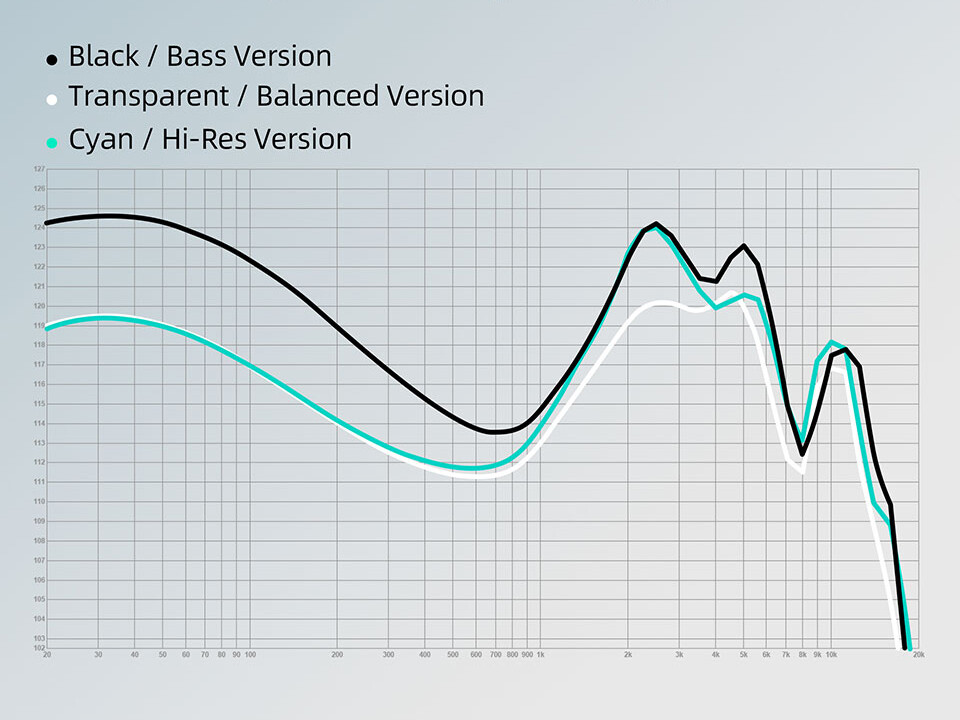 そして、「Bass」(ブラック)および「Hi-Fi」(シアン)のほうはステムノズルのフィルターに別タイプのものを採用することで変化をもたせているらしく、KZ的に「こういうアプローチってどうっすかね?」みたいにユーザーの反応を見るために試しに作って同梱している、という感じがします。おそらく「Balanced」(透明)モデルほどはチューニングを追い込んではいないだろうなあ、という印象です。「Bass」(ブラック)は海外での低域好きな方向けのチューニングという感じで結構分かりやすい印象。ただ中高域が結構粗くなるのでバランス的には今ひとつです。逆に「Hi-Fi」(シアン)はざっくりサブベースをカットしている感があり分離はかなり良くなりますが物足りなさを感じます。しかし中高域の明瞭感が増すため、ボーカルを中心に「Balanced」(透明)より分析的に聴くという使い方はできるかもしれません。だから「高域強化」ではなく「Hi-Fi」なわけですね。