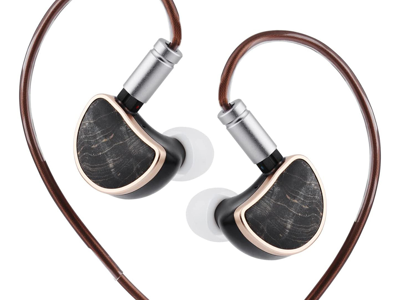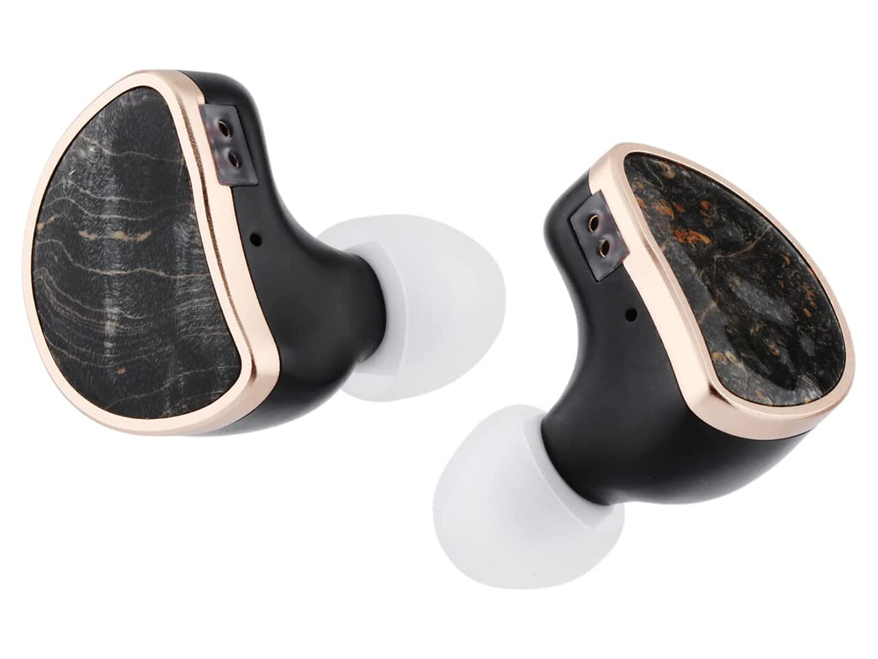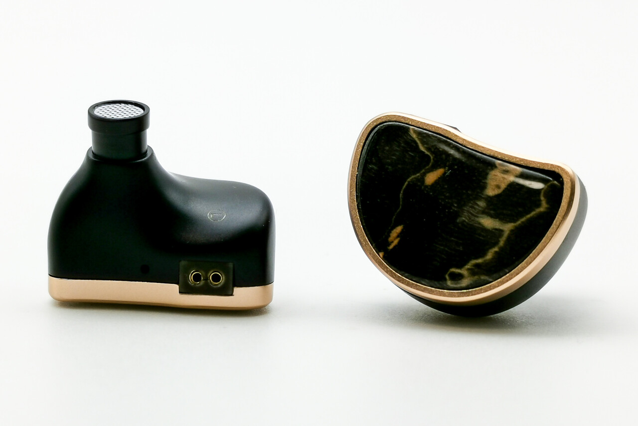 本体はアルミ製の金属シェルでシンプルなデザインながら使いやすいデザインです。木製パネルにレジンコートしたフェイスプレートも高級感がありますね。耳にフィとしやすいサイズ感とデザインで装着性は良好です。コネクタは2pin仕様で埋め込みのないフラットな仕様です。