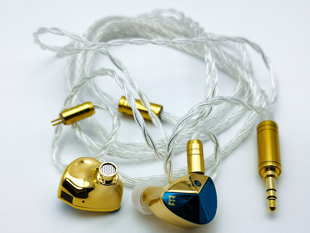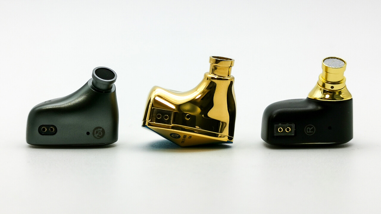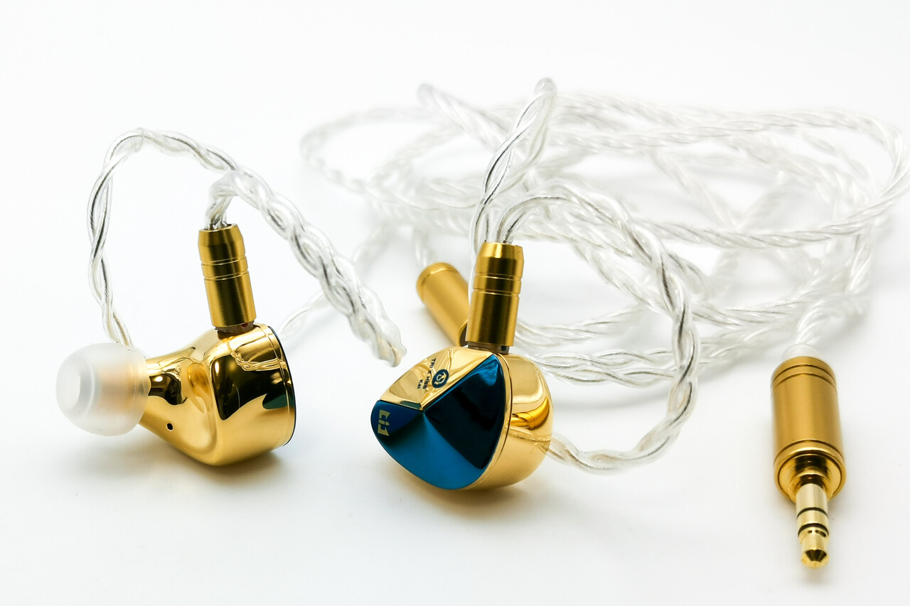 本体はゴールドの表面処理が施されたアルミ合金製。耳にフィットしやすいデザインでちょっと大きめに見えますが、実際は耳に収まりやすいサイズ感です。ステムノズルは極端に太いわけでは無く一般的なサイズですので、KZやTFZと比べると相対的にコンパクトであることがわかります。
