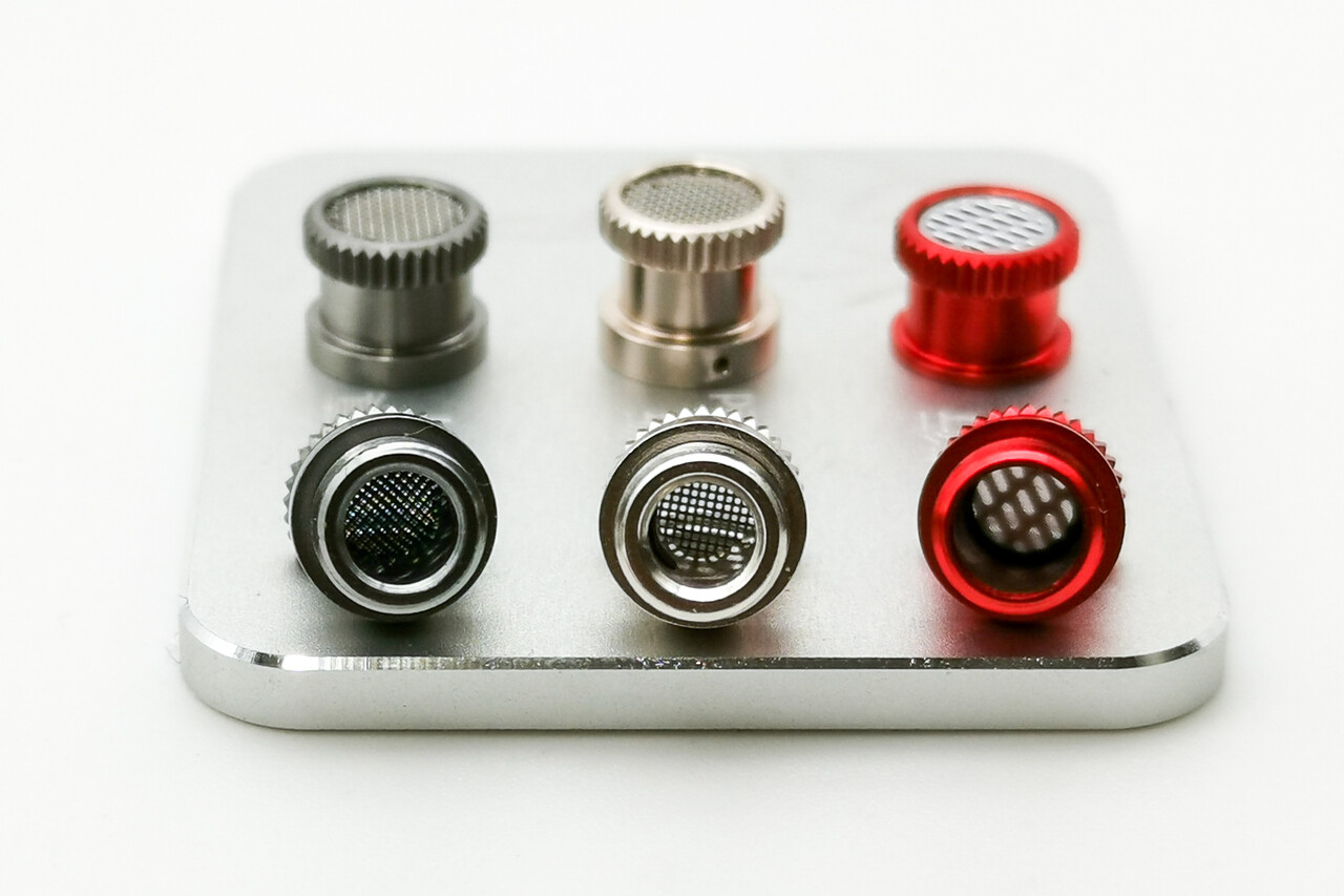 交換式フィルターノズルは一般的な低域または高域を強化したり減衰するものとは異なり、「Balanced」「Hi-Fi」「Pop」という組み合わせ。見ると標準の「Balanced」のみがノズルが多少長く、それ以外の2種類は若干短い仕様。そしてノズルの内径は「Balanced」「Hi-Fi」が小さく(=ノズルに厚みがある)、「Pop」が大きい仕様。そして「Balanced」「Hi-Fi」は外側は同じメッシュパーツですが、「Hi-Fi」は裏側に別パターンのメッシュが張られ、外側のメッシュ穴が大きい「Pop」の裏側はフィルター材が張られています。なかなか興味深い仕様ですね。