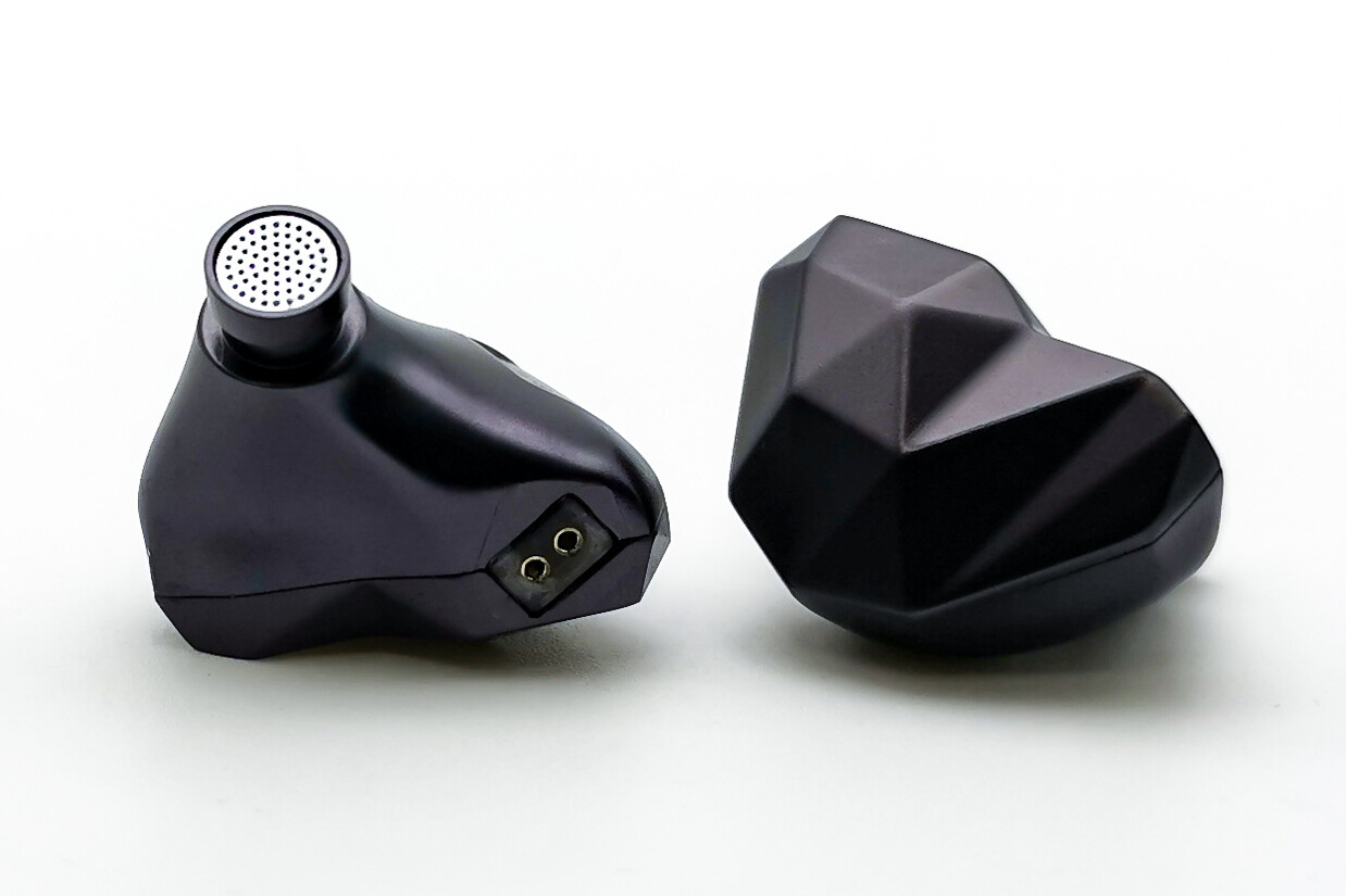 今回の「TRIPOWIN Rhombus」は、「10mm LCP/PU複合振動板」ダイナミックドライバーと「Knowles 33518」バランスド・アーマチュア(BA)ドライバーを搭載した1BA+1DD構成のハイブリッドモデルです。シェルは5軸CNC加工による航空グレードのアルミニウム製。名称の由来となった多面体デザインが特徴的です。各ドライバー用に別々の音響チャンバーが設計されており、それぞれのチャンバーはステムノズル部で結合され不要な共鳴を抑え調和されたサウンドを出力します。