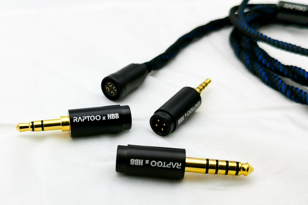 ケーブルは布巻で柔らかく取り回しは非常に良好です。最近では採用も増えている交換式のプラグも質の高いケーブルではありがたいですね。こちらも「RAPTGO × HBB HOOK-X」のカラーに合わせて同様に落ち着いたブルーのカラーリングがクールです。