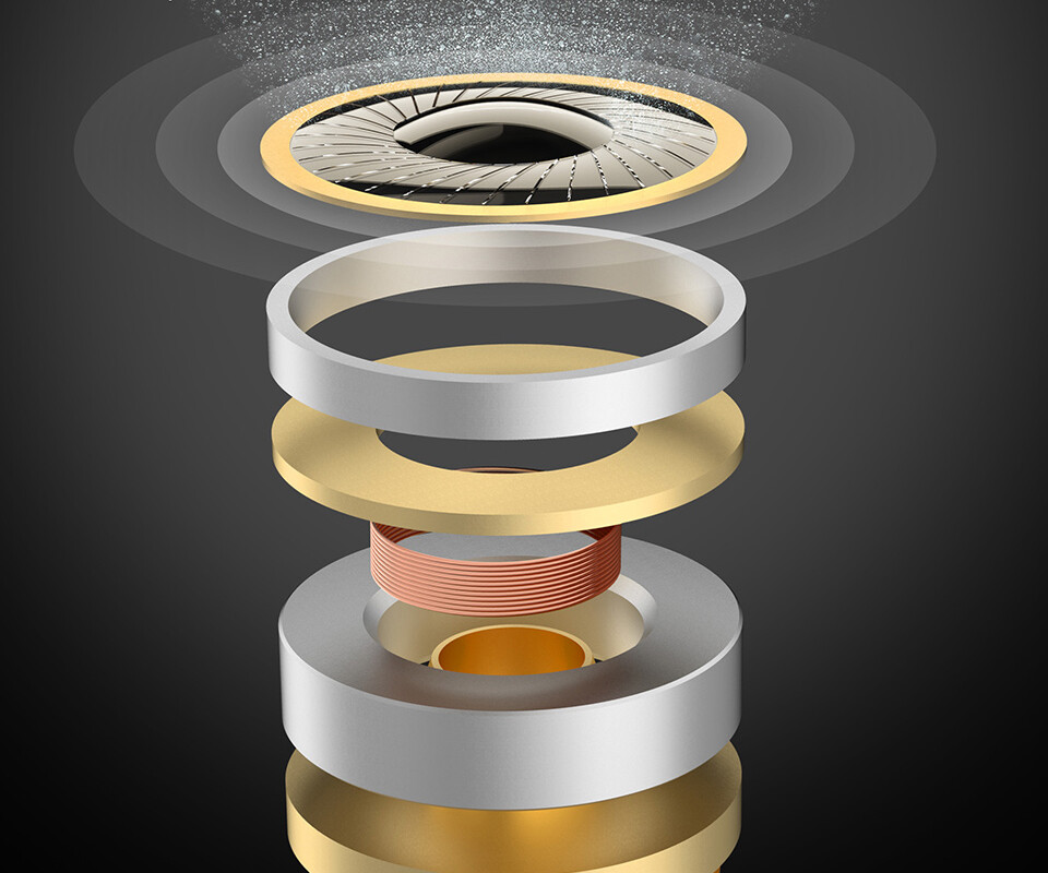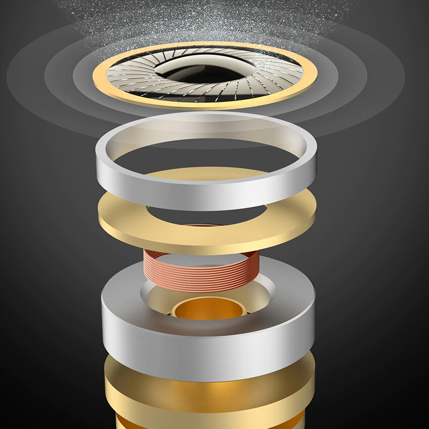 よりコンパクトなサイズの「XUN-7」ダイナミックドライバーは、「XUN」系列としては第3世代のドライバーで、ムービングコイルの採用と高性能フィルム振動板により、高い低歪率を実現。N52磁石を採用した二重磁気回路設計との組み合わせにより、密閉シャーシ構造ながら従来よりさらに広い音場を実現しているそうです。
