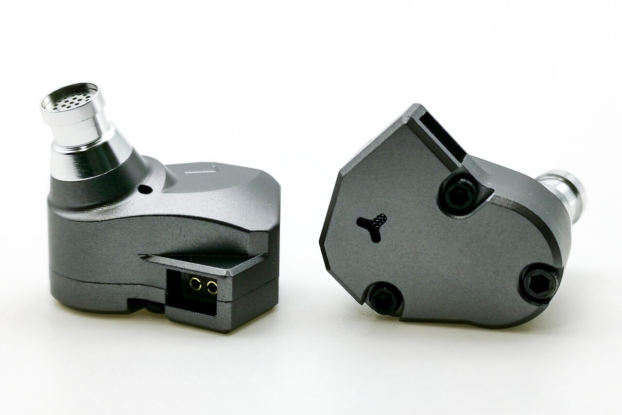 本体はCNC加工されたアルミ合金製。シェルは某C○mpf○re→KZ ZS5/ZS6→RevoNext QT2というオマージュされたデザインの変遷が伺える形状。フラットなフェイスプレートはQT2風でもはや某C○mpf○reからは結構遠くなっていますが、装着するステムノズル部の意匠はオリジナルの某C○mpf○reみが感じられます。いっぽうで耳にフィットする部分が斜めにカットされ、装着時に耳が痛く鳴らないように配慮しているなど「TINHIFI C2」での独自の要素も多くあります。そのためこの手のデザインの金属シェルのイヤホンのなかでは最も装着性に優れています。あと金属加工のクオリティも非常に高く外観だけなら「お値段以上」の仕上がりですね。