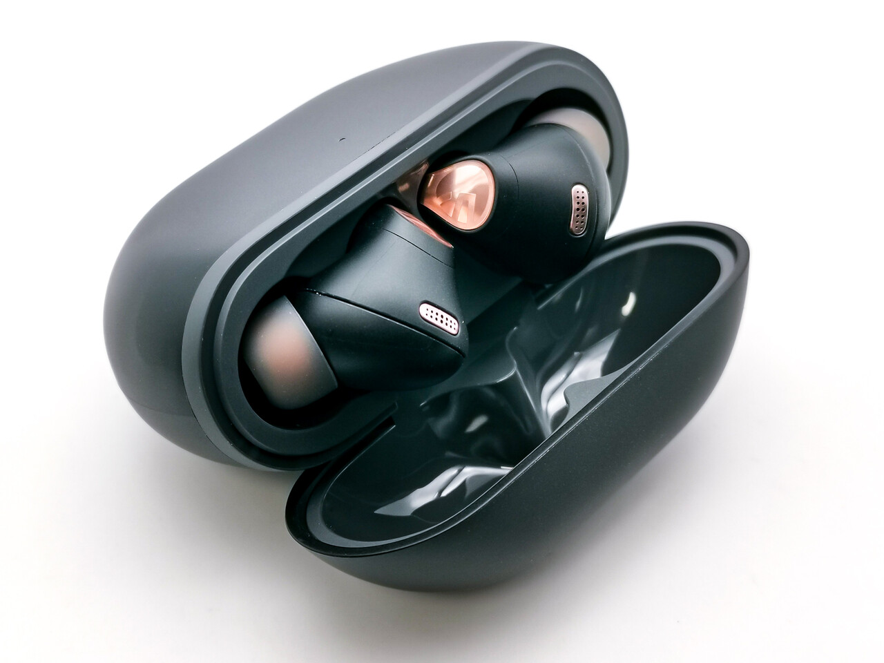 また充電ケースは500mAhと大容量のバッテリーを搭載しつつ非常に軽量でサイズも比較的コンパクトです。丸みを帯びたデザインでよりコンパクトな印象を受けますね。
