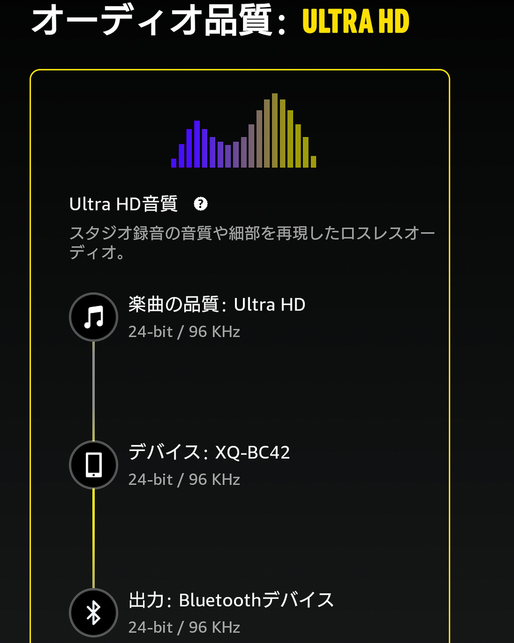 一般的にハイレゾ音源でも「24bit/96kHz」や「24bit/48kHz」といったフォーマットが多く、「Apple Music」のハイレゾロスレスや「Amazon Music」の「UltraHD」も同様のため、「24bit」にしても基本的には全く問題はありません。