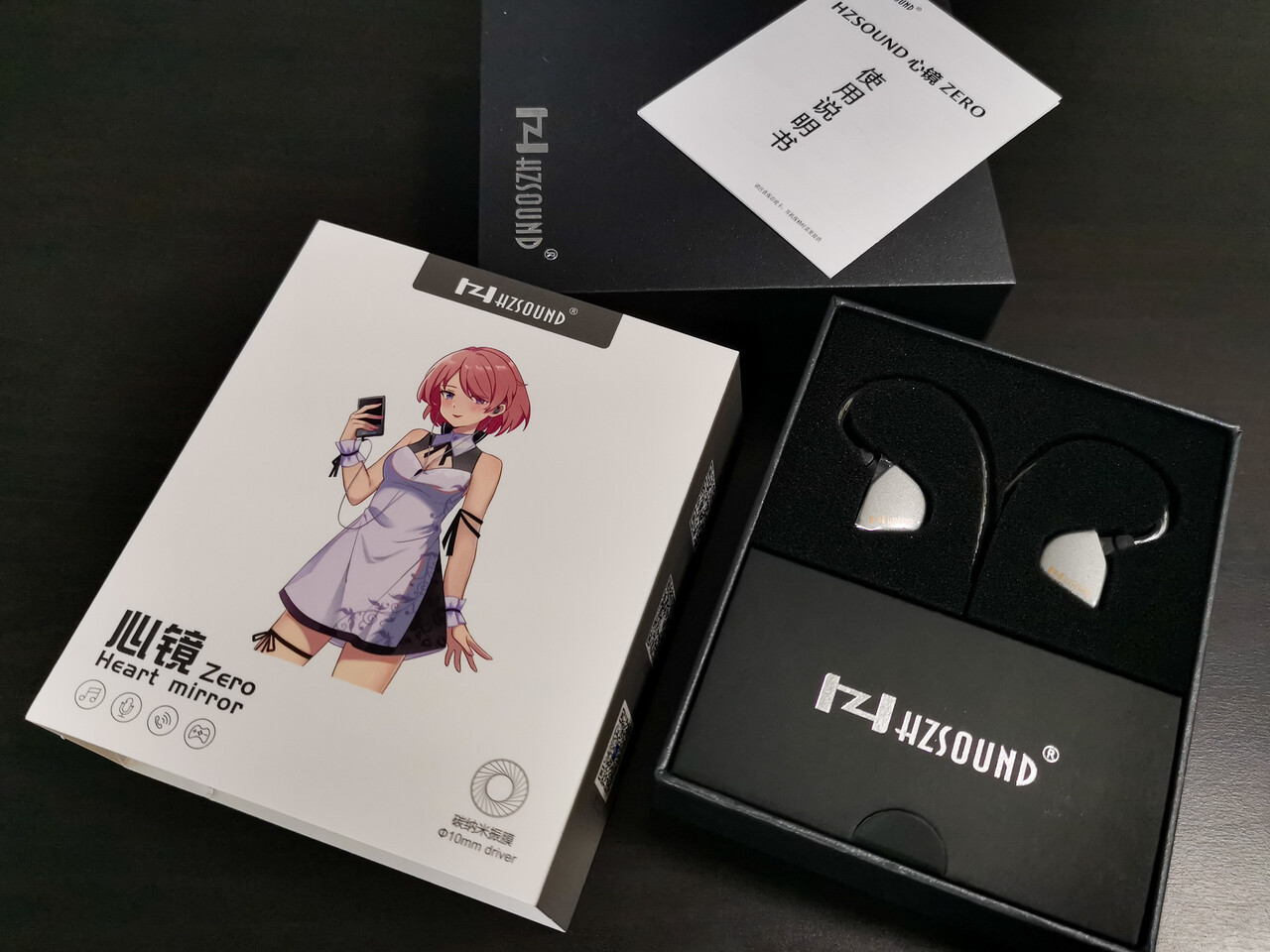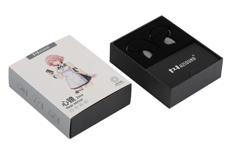 「HZSOUND Heart Mirror Zero」のパッケージは今回のモデルからキャラ絵仕様になりました。どうも中華イヤホン界隈ではエントリー(より幅広いユーザーを対象にした)モデルではキャラ絵にするほうが「つかみ」が良いと思われているみたいです。実際のマーケティング的にはどうなんでしょうね。
