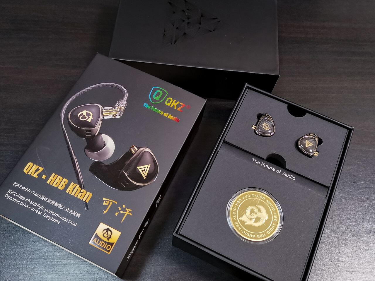 こんにちは。今回は「QKZ x HBB Khan」 です。低価格中華イヤホンのサプライヤーとしてここ数年は超低価格な製品でマニアの間でも知られる存在となった「QKZ」と、これまた海外レビュアーコラボとしては各社からひっぱりだこな印象の「HBB」とのコラボの第2弾です。40ドル以下の低価格に2種類のダイナミックドライバーを搭載した2DD構成、アルミフェイス+天然樹脂の3Dプリントシェル構成と、前回の「QKZxHBB」に引き続き特徴のあるモデルとなっています。
