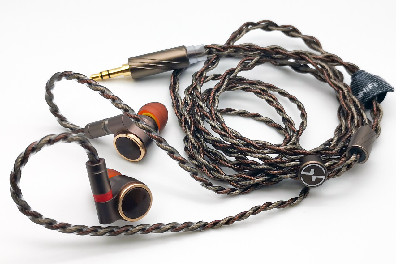 ケーブルはエナメルコートされた銀メッキ線ケーブルです。本体カラーと合わせたブロンズカラーの仕上げで落ち着いた印象がありますね。ちょっと被膜が硬いですが取り回し自体は問題ありません。